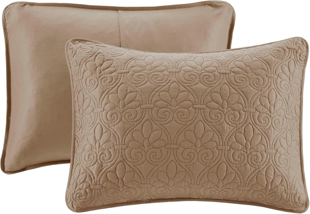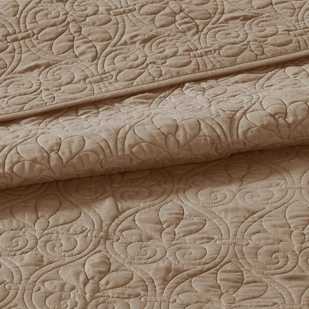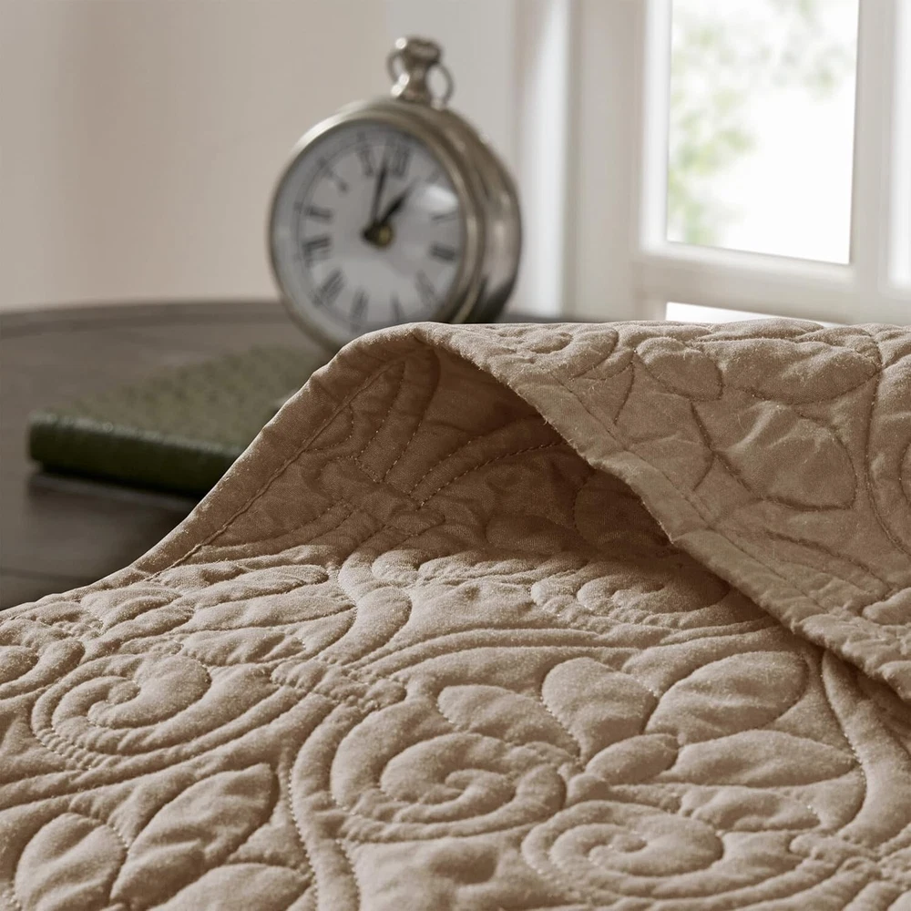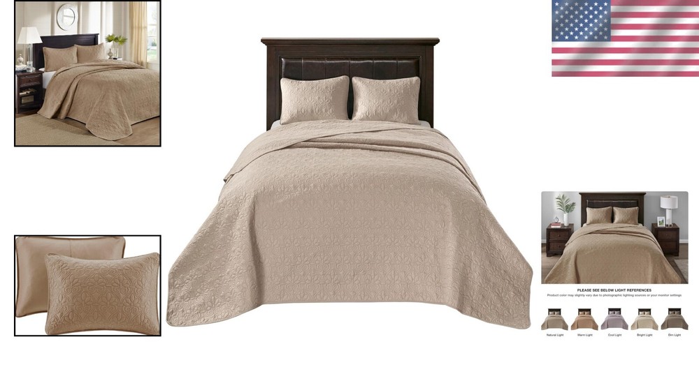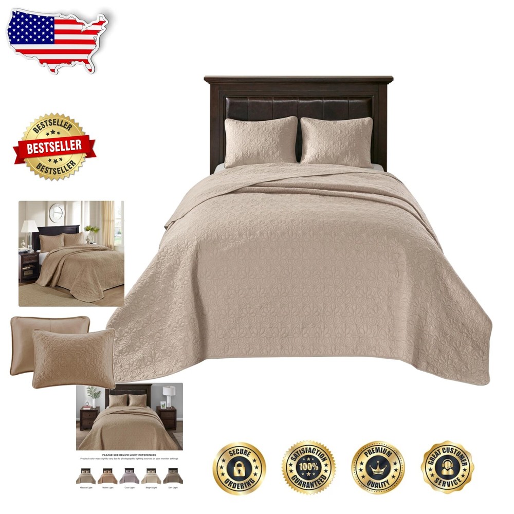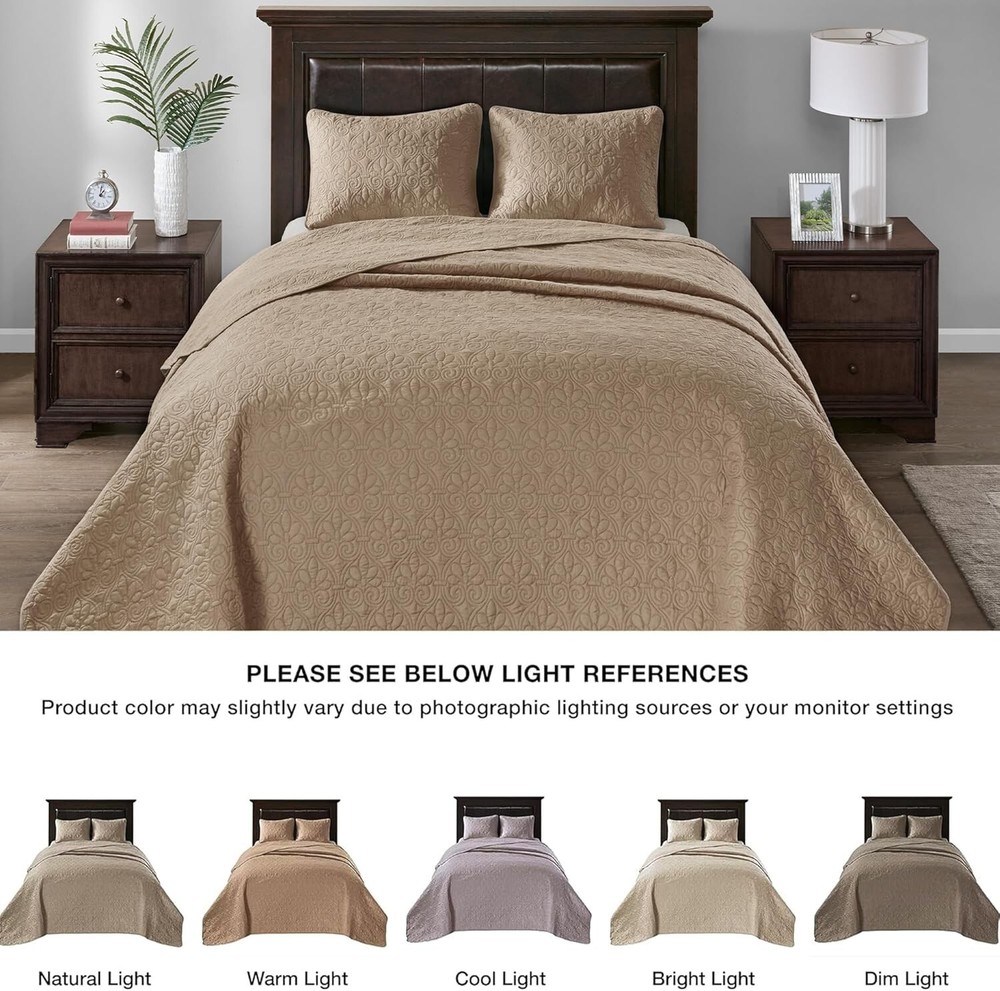 This quilt set is a game-changer! The reversible design and ultra-soft microfiber feel luxurious, while the generous size drapes perfectly over my thick mattress. I love how the elegant damask pattern elevates my bedroom without being overpowering. The included shams complete the polished look, and the cotton-olefin blend keeps me comfortable all night. Washes beautifully too – definitely worth every penny!