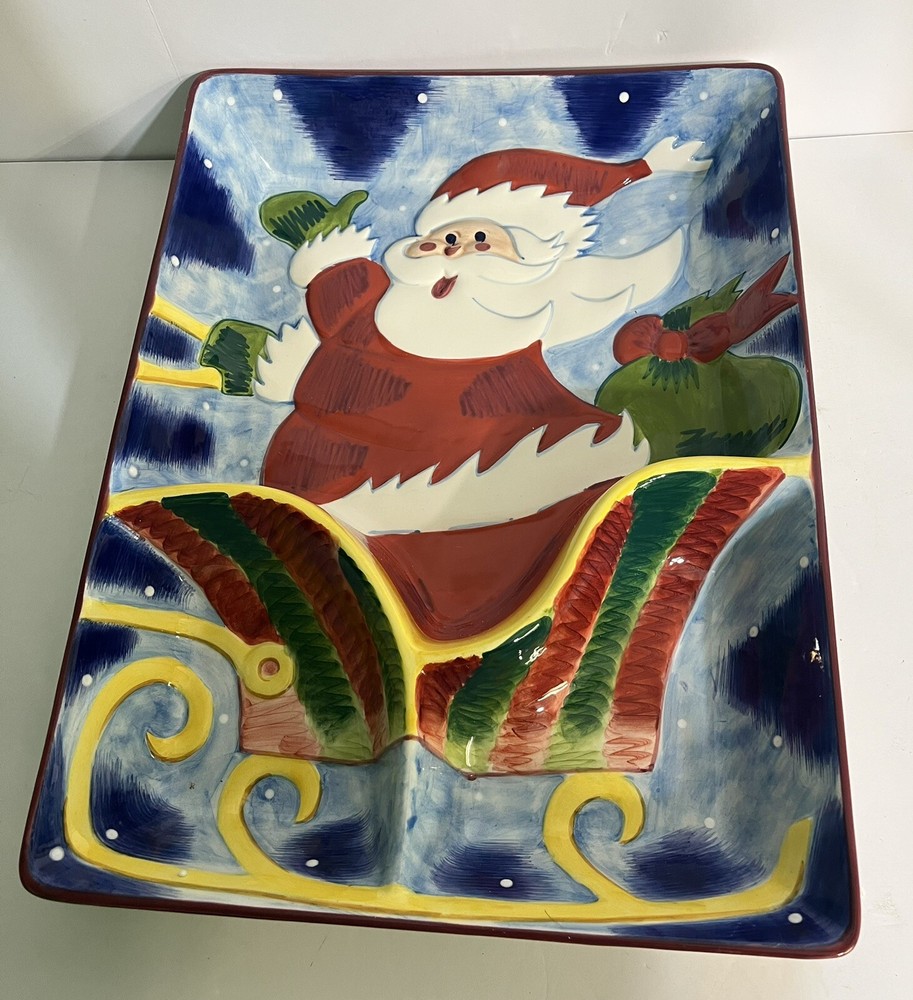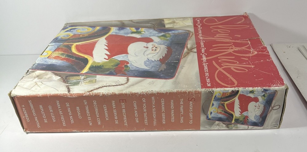 VTG Clay Art Ceramic Sleigh Ride Chip 'n Dip Platter Christmas Serving Tray15.25" x 11.5" like new in box no chips or cracks please see photos T his was from an estate auction and I have looked it over and have listed any flaws I have found please feel free to contact me with any questions you have. We combine shipping so please feel free to check out our other items for sale and see if you can find your vintage or antique treasures we locate at Estate sales and as always thanks for looking