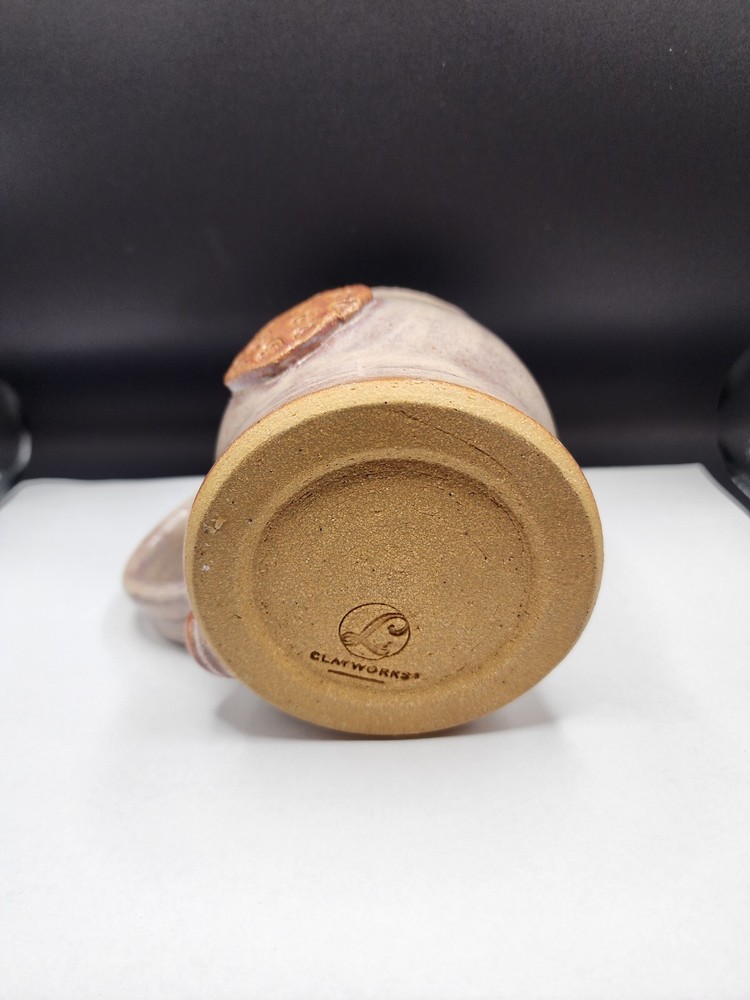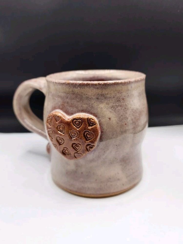 Beautiful hand made mug with applied hearts and stamps. No chips or cracks. Never used. Very unique mug. This Clayworks Studio Art Raised Heart Coffee Mug is a handcrafted piece from the United States. Made of clay and stoneware, it features a unique heart-shaped design with pink hearts pattern, signed by Clayworks. The 12oz mug is decorated with a glossy finish, making it a perfect choice for Anniversary, Valentine's Day, or any occasion. This original piece showcases art pottery production style and studio crafted technique, adding a decorative touch to your collection.
