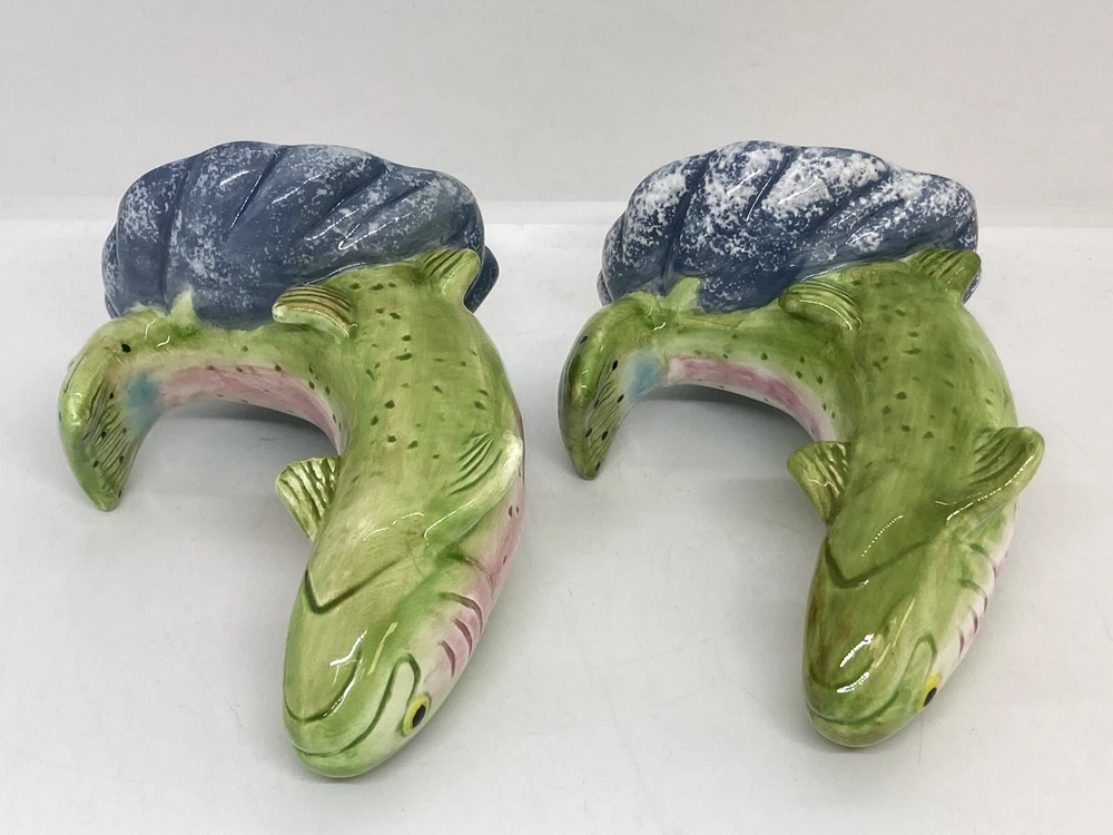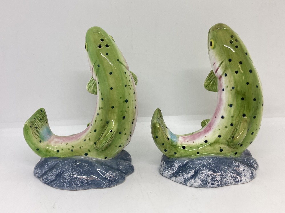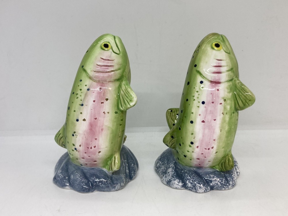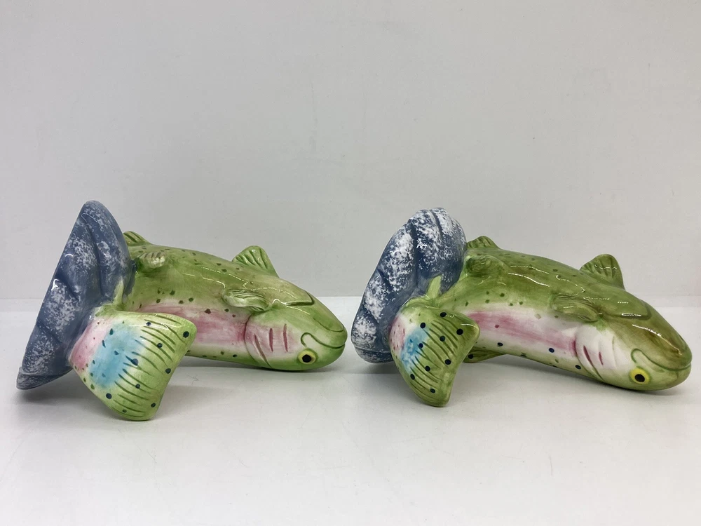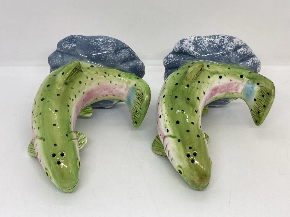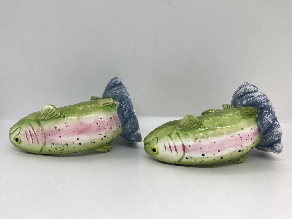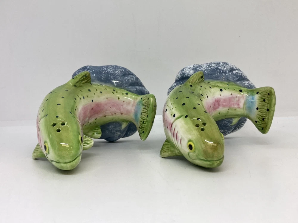 Up for sale is a Clever Choice NOHO Studio Hand Painted Rainbow Trout Salt & Pepper Shaker Set. In great preowned condition with no cracks or chips. Pictures are part of the description please use them. Please zoom in on all of the pictures for further detail on condition. You will receive the exact item shown in the pictures. Returns are acceptable for damaged items only. Items returned must be sent back in exact condition as when they were purchased. Fast and free shipping with tracking included.