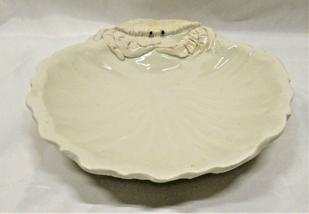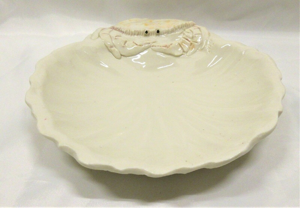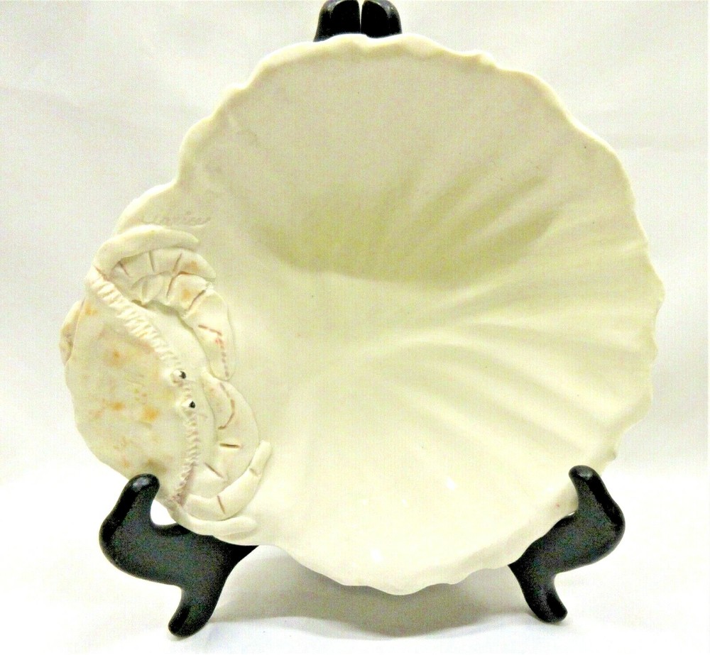This is such a cute studio art dish sea shell w/ crab. It is signed Clarice and is all white with a touch of orange on the crab and black eyes. It measures 8 1/2" x 7 3/4" and is in excellent used con...