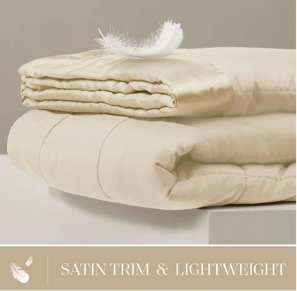 This Cooling Blanket by Madison Park is perfect for hot sleepers and is suitable for all seasons. Made from 100% polyester with a hypoallergenic down alternative filling, it provides quality comfort and wellness. The rectangular shape and classic box quilting with satin trim add a touch of luxury to any bedroom. Machine washable and steam iron for wrinkle removal, this lightweight and breathable blanket ensures a good night's sleep for teens, adults, and kids alike. Oeko-Tex certified, this modern and stylish blanket in beige color includes no harmful substances or chemicals.