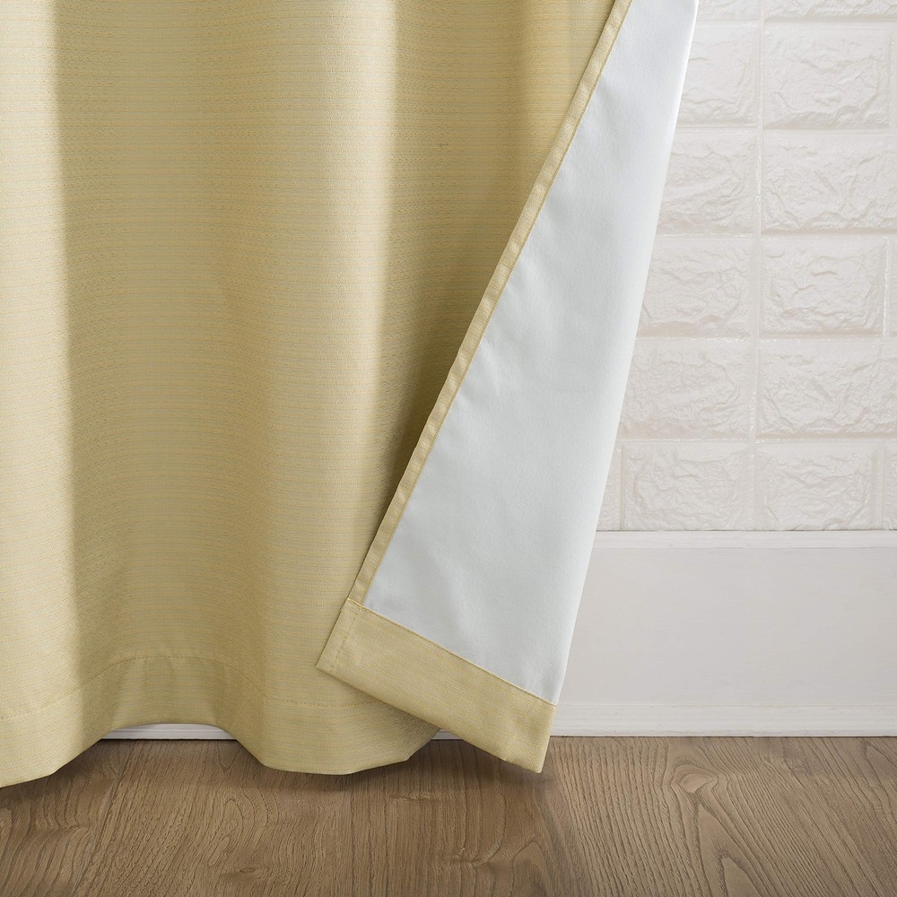 Cooper Thermal Insulated Energy Efficient Grommet Curtain Panels offer energy efficiency and elevated design with a woven texture complemented with a modern metal grommet top for easy hanging on a standard curtain rod up to 1.5" in diameter. Thermal Insulated Room Darkening Curtains are laboratory tested to significantly reduce light exposure, offer outside noise reduction by up to 25%, and decrease energy lost through your windows by up to 40%. Comfort is optimized with thermal properties that help keep summer heat and winter chill out of your home. Hang in your living room for enhanced privacy, or in your bedroom for a sounder, more uninterrupted sleep. Sold as individual panels measuring 40" width by 63" length in color flax. Measure carefully before selecting your desired size and quantity. Rod not included. Machine wash cold on gentle cycle. Use non-chlorine bleach when needed. Tumble dry on low heat, using a cool iron as needed. Unique textured print with Thermal Insulated Room Darkening technology Energy efficient design reduces energy lost through your windows by up to 40%. Thermal insulation helps you keep the summer heat and winter chill out of your home. Noise reduction helps you get a sounder, more uninterrupted sleep Silver metal grommet top fits a standard curtain rod for easy hanging.
