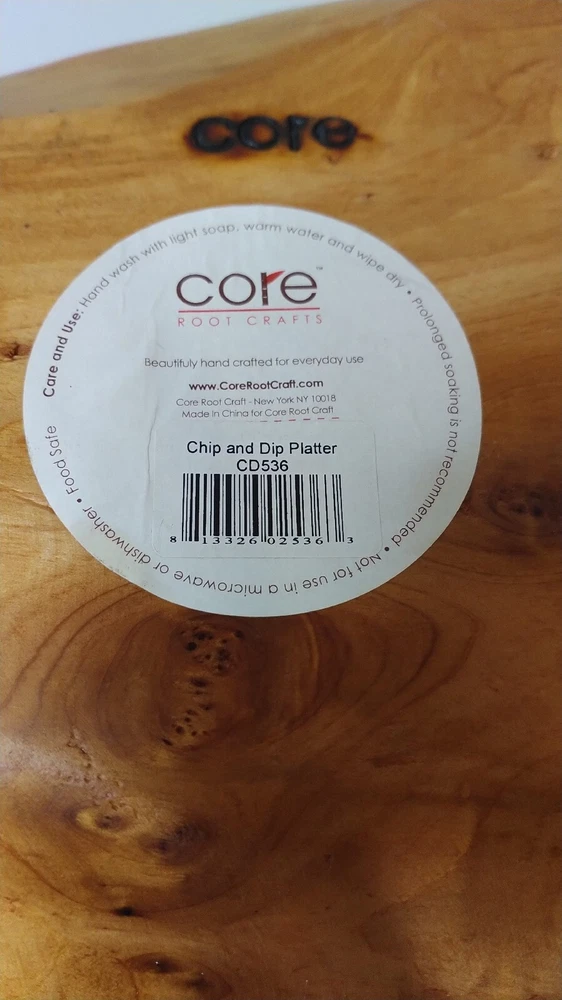 Core Root Crafts Large Root Platter CD536 Chip And Dip Platter Beautiful Wood. Measures approximately 14" X 8". Pre-owned, good condition. It has some spots of minor wear on the edge. Still has sticker on bottom. Please refer to photos as part of the description. Shipping with USPS Priority Mail. Thanks for checking us out.