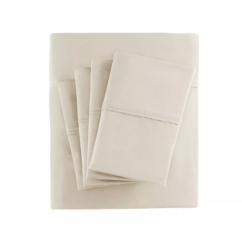 •800 Thread Count Cotton Blend Polyester (56% cotton, 44% polyester sateen) sheet set •Set includes flat sheet, all over elastic fitted sheet (2 fitted sheets for Split King sizes), and 4 pillowcases •Resistant to fading, shrinking and wrinkles •15” fitted sheet pocket depth, fully elasticized for better coverage, fits up to 17" mattresses •Sateen weave is lightly brushed with a peached finish for an ultra-soft feel •Machine washable for easy care •OEKO-TEX Certified, includes no harmful substances or chemicals Description Snuggle up in luxury comfort every single night with these cotton blend polyester sateen sheets. Made from 56% cotton and 44% polyester sateen, these sheets are resistant to fading, shrinking, and wrinkling. Our sheets go through a Shop Our Store Contact Us Add to Favorite Sellers Cotton Blend 6pc Sheet Set 800 Thread Count (California King) Ivory Product Details •800 Thread Count Cotton Blend Polyester (56% cotton, 44% polyester sateen) sheet set •Set includes flat sheet, all over elastic fitted sheet (2 fitted sheets for Split King sizes), and 4 pillowcases •Resistant to fading, shrinking and wrinkles •15” fitted sheet pocket depth, fully elasticized for better coverage, fits up to 17" mattresses •Sateen weave is lightly brushed with a peached finish for an ultra-soft feel •Machine washable for easy care •OEKO-TEX Certified, includes no harmful substances or chemicals Description Snuggle up in luxury comfort every single night with these cotton blend polyester sateen sheets. Made from 56% cotton and 44% polyester sateen, these sheets are resistant to fading, shrinking, and wrinkling. Our sheets go through a very light brushing process that gives them an incredible peach-like feel against your skin. Machine washable for easy care. These sheets are also OEKO-TEX certified, meaning they do not contain any harmful substances or chemicals, ensuring quality comfort and wellness. Number of Pieces: 6 Piece 1: Flat Sheet: 102 Inches (L) x 108 Inches (W), Quantity 1 Piece 2: Fitted Sheet: 84 Inches (L) x 72 Inches (W), Quantity 1 Piece 3: Pillow Case: 40 Inches (L) x 20 Inches (W), Quantity 4 Fabric Name: Sateen Sheet Features: All Around Elastic on Fitted Sheet Textile Material: 56% Cotton, 44% Polyester Includes: 1 Flat Sheet, 1 Fitted Sheet, 4 Pillowcases Thread Count: 800 Industry or Government Certifications: OEKO-TEX STANDARD 100 Fits Maximum Mattress Depth: 17 Inches OEKO-TEX Institution: HOHENSTEIN HTTI OEKO-TEX Certification Number: 08.JA.59669 Care and Cleaning: Machine Wash, Tumble Dry Payment For fixed priced listings, Buy it Now and Best Offer, payment is required at the time of purchase. We accept PayPal and credit cards via PayPal. We make every effort of shipping within 1 business day of payment clearing. All payments must be through PayPal, utilizing eBay checkout. For auction listings, payment is required within two (2) days of purchase. Any items not paid within two (5) days will risk the product being re-listed and sold to another buyer. Taxes - US We collect sales tax, as required by law. Please see the Shipping and Payments tab for more information. Shipping For fixed priced listings, Buy it Now and Best Offer, payment is required at the time of purchase. We accept PayPal and credit cards via PayPal. We make every effort of shipping within 1 business day of payment clearing. All payments must be through PayPal, utilizing eBay checkout. For auction listings, payment is required within two (2) days of purchase. Any items not paid within two (2) days will risk the product being re-listed and sold to another buyer. Policies If you do need to return your item, please contact us via phone or email (you will receive an email when your product ships with additional details - Subject: Important information about your purchase from Bullseye Deals). You will then be provided with a return shipping label and packing slip. Pack the item carefully. Include the packing slip, apply the shipping label, and return the item within 5 business days of the date you request a return. You must return the item within 5 business days of requesting the return, or your return will be canceled. Once we receive your order we will inspect the return. Please allow up to 5 business days of receiving the returned item for your refund.