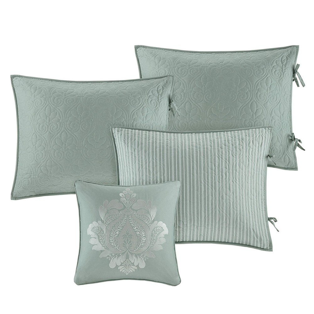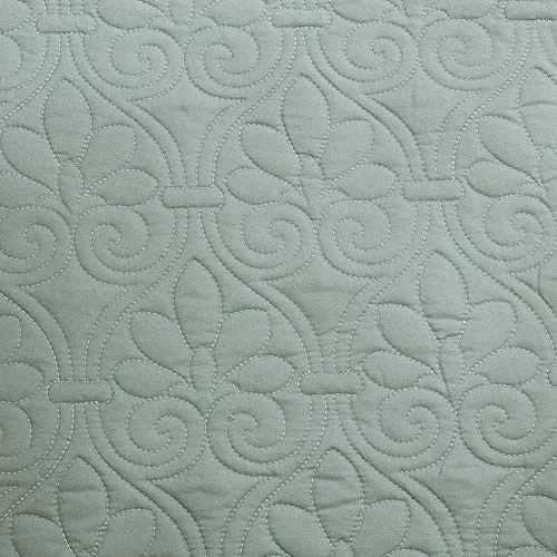 The Quebec 6 Piece Reversible Daybed Cover Set offers a charming cottage-inspired update to your guest bedroom. The daybed cover and 3 shams flaunt a classic stitch pattern that creates a rich depth and texture on the face of the bedding set. A square decorative pillow with elegant embroidery and a striped bed skirt add the finishing touches to the daybed set. Quilted ogee Daybed Set Includes: daybed cover, 3 reversible shams, bedskirt, dec pillow Daybed Cover/Sham: 100% polyester solid face and brushed microfiber print back, 240g/m2 90% cotton, 10% polyester Bedskirt: 100% polyester printed, 100% polyester platform Pillows: 100% polyester shell, polyester fill 1 Daybed Cover:75x39" 3 Standard Shams:20x26" (3) 1 Bedskirt:39x75+15" 1 Decorative Pillow:16x16" MACHINE WASH COLD, GENTLE CYCLE, AND SEPARATELY. DO NOT BLEACH. TUMBLE DRY LOW, REMOVE PROMPTLY, DO NOT IRON. IF THERE IS NO FREE MOVEMENT IN THE WASHER OR DRYER, USE LARGE CAPACITY COMMERCIAL WASHER/DRYER.