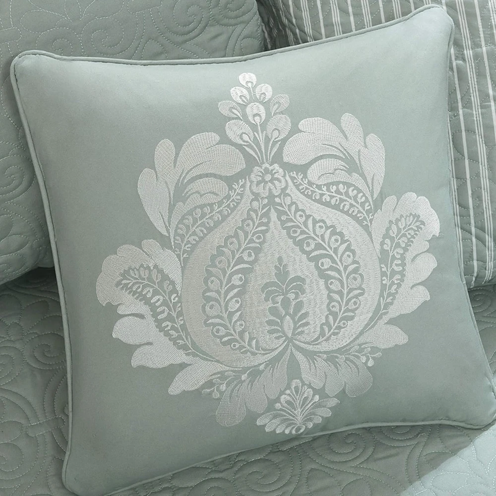 Menu Other Items Feedbacks About Us Contact Us Add To Favorites Cotton Daybed Cover Set-Double Sided Quilting Classic Cottage Design All Season Bedding with Bedskirt, Matching Shams, Decorative Pillow, 39"X75", Quebec Seafoam 6 Piece 100% Microfiber Face & Reverse, Filling: 90% Cotton, 10% Olefin Quilted ogee Daybed Set Includes: daybed cover, 3 reversible shams, bedskirt, dec pillow Daybed Cover/Sham: 100% polyester solid face and brushed microfiber print back, 240g/m2 90% cotton, 10% polyester Bedskirt: 100% polyester printed, 100% polyester platform Pillows: 100% polyester shell, polyester fill 1 Daybed Cover:75x39" 3 Standard Shams:20x26" (3) 1 Bedskirt:39x75+15" 1 Decorative Pillow:16x16" MACHINE WASH COLD, GENTLE CYCLE, AND SEPARATELY. DO NOT BLEACH. TUMBLE DRY LOW, REMOVE PROMPTLY, DO NOT IRON. IF THERE IS NO FREE MOVEMENT IN THE WASHER OR DRYER, USE LARGE CAPACITY COMMERCIAL WASHER/DRYER. The Madison Park Quebec 6 Piece Reversible Daybed Cover Set offers a charming cottage-inspired update to your guest bedroom. The daybed cover and 3 shams flaunt a classic stitch pattern that creates a rich depth and texture on the face of the bedding set. A square decorative pillow with elegant embroidery and a striped bed skirt add the finishing touches to the daybed set. Item Specification Item model number MP13-3979 Style Casual Assembly required No Pattern Damask Country of Origin China Theme Bohemian,Modern,Damask Department unisex-adult Number of Pieces 6 Batteries required No Product Dimensions 75 x 39 x 0.04 inches Material Microfiber Seasons All, Summer Is Discontinued By Manufacturer No Included Components 1 Daybed Cover, 3 Standard Shams, 1 Bedskirt, 1 Decorative Pillow Item dimensions L x W x H 75 x 39 x 0.04 inches Fabric Type 100% Microfiber Face & Reverse, Filling: 90% Cotton, 10% Olefin Item Weight 6.34 pounds Pillowcase Length 16 Inches Color Quebec Seafoam Global Trade Identification Number 00675716867638 Product Care Instructions Machine Wash Size 75"x39" Dimensions Shipping Returns Additional Info Product Dimensions: 39.0 inches x 75.0 inches x 0.04 inches. Weight: 6.34 lb Fast shipping is very important for us. Our standard shipping service is FREE. Your order will be shipped within 1-3 business days upon full payment received. Most items are delivered within 3-5 business days, however, please allow 3-10 business days. We are shipping only to USA. We only ship to the confirmed Paypal address. We reserve the right to cancel any order for any reason at any time. We are not responsible for undeliverable addresses. We offer a 30 day return policy from checkout winning date. Your satisfaction is guaranteed! If for any reason you are unhappy with your item, just return it within 30 days for a full refund, minus shipping cost. Please contact us prior to initiating a return so that we can issue you a refund authorization. Items defective upon receipt must be packaged in their retail packaging as if new and returned with a detailed description of the problem. Return shipping fees are not refundable. We reserve the right to decline any returns if the above guidelines are not followed. All of our items, unless otherwise stated, will only run on 120 volts. Please check to make sure your country complies with these specifications. If you have a problem or question regarding your transaction please contact us before leaving any type of feedback. We will work with you to resolve any problem you may have.