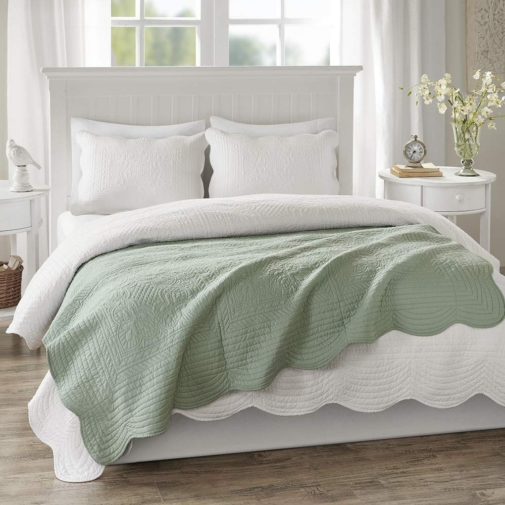 The Tuscany Quilted Throw is perfect for a new luxurious look. The decorative stitch pattern pairs easily with your existing décor and adds a stylish element with beautiful scalloped edges. Made from a soft polyester microfiber, this quilted throw is filled with cotton filling for extra comfort and warmth. The prewash finish gives this decorative throw a worn appearance for added charm. Microfiber quilted throw Filling: 7oz/sq yard 90% cotton 10% other fiber Prewash finish 1 Throw:60"W x 72"L Machine wash