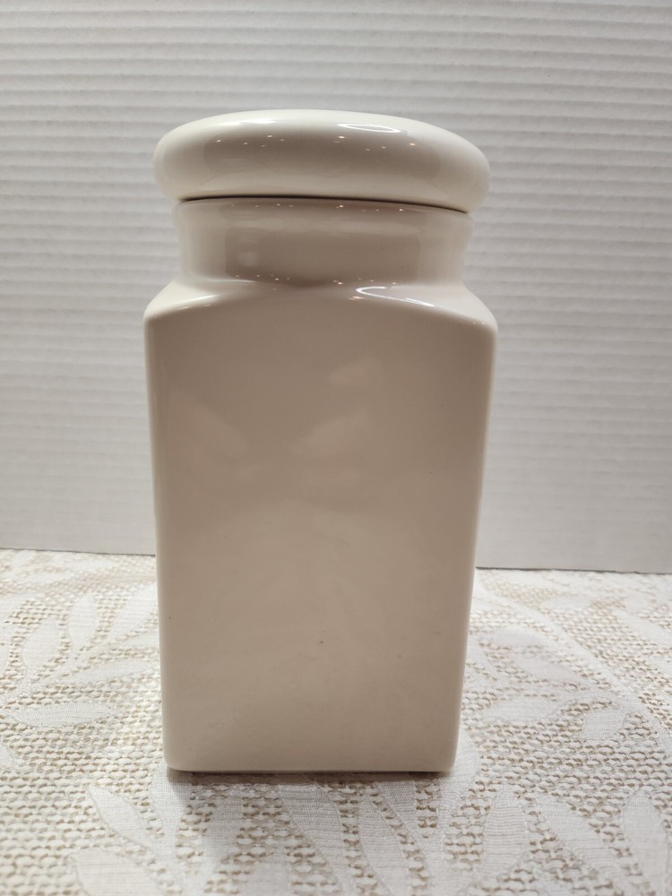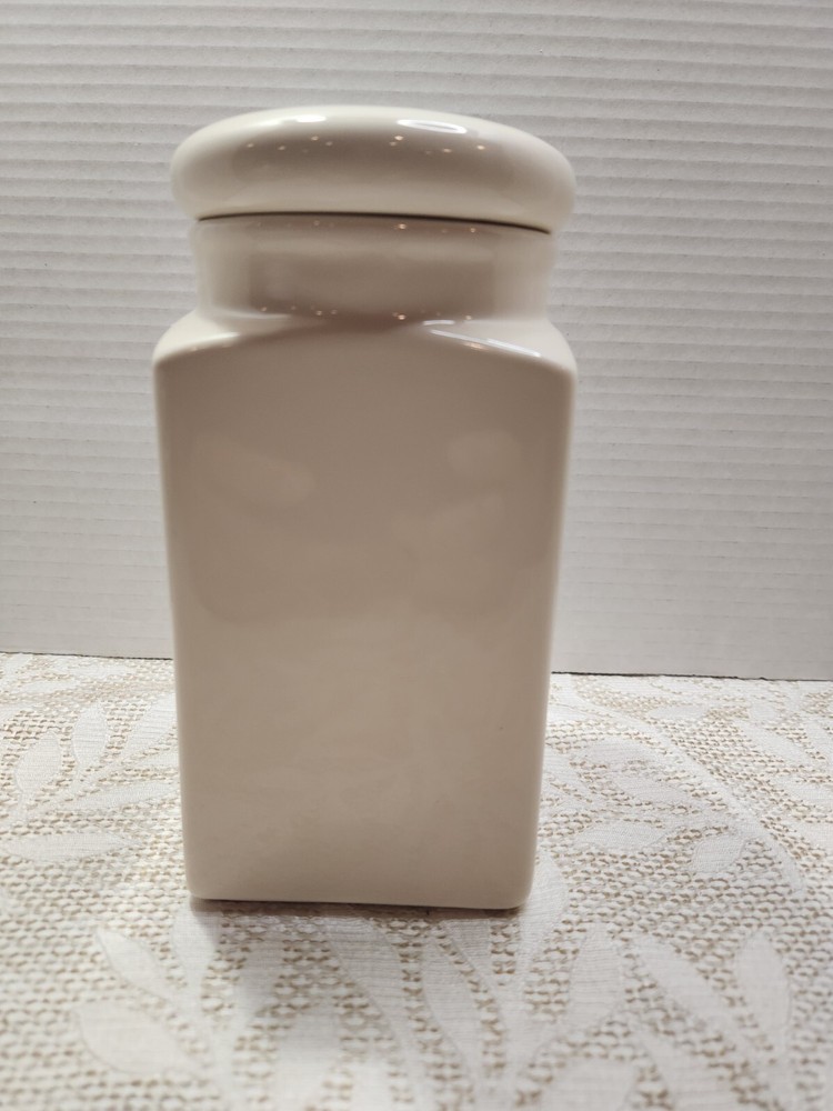 This beautiful stoneware canister from The London Design Studio is a must-have for any kitchen. With its country-inspired pattern and airtight seal, it's perfect for storing dry goods like flour, sugar, or coffee. The medium-sized canister measures 7 7/8 inches in height and 4 inches in width, with one compartment and a push-on lid. Crafted from high-quality ceramic and porcelain, this canister is an original piece from The London Design Studio. It's not only functional but also a great decorative addition to any kitchen. The canister is part of a set including a lid and is an original licensed reproduction. This canister is being sold as a replacement piece. There are no other pieces to this set included. Please examine all photos for additional details as they are part of the item description.