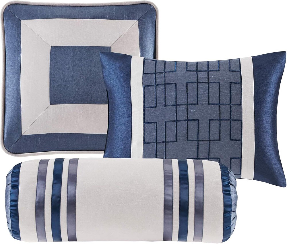 This comforter set feels like a dream—super soft, lightweight, and perfect for all seasons. The navy geometric pattern adds a touch of elegance, and the included shams and pillows complete the luxurious hotel vibe. Washes well, stays fluffy, and fits my king bed perfectly. Definitely worth it for the price!