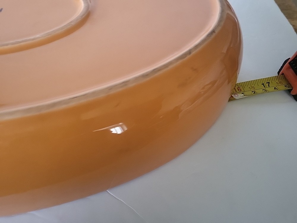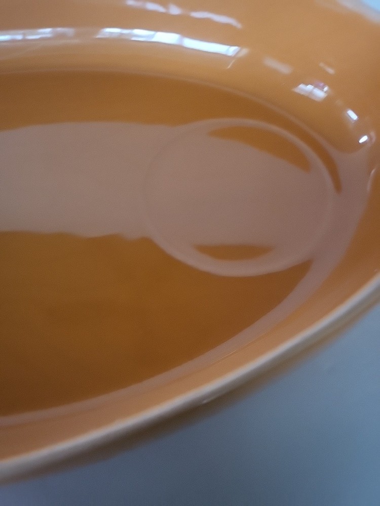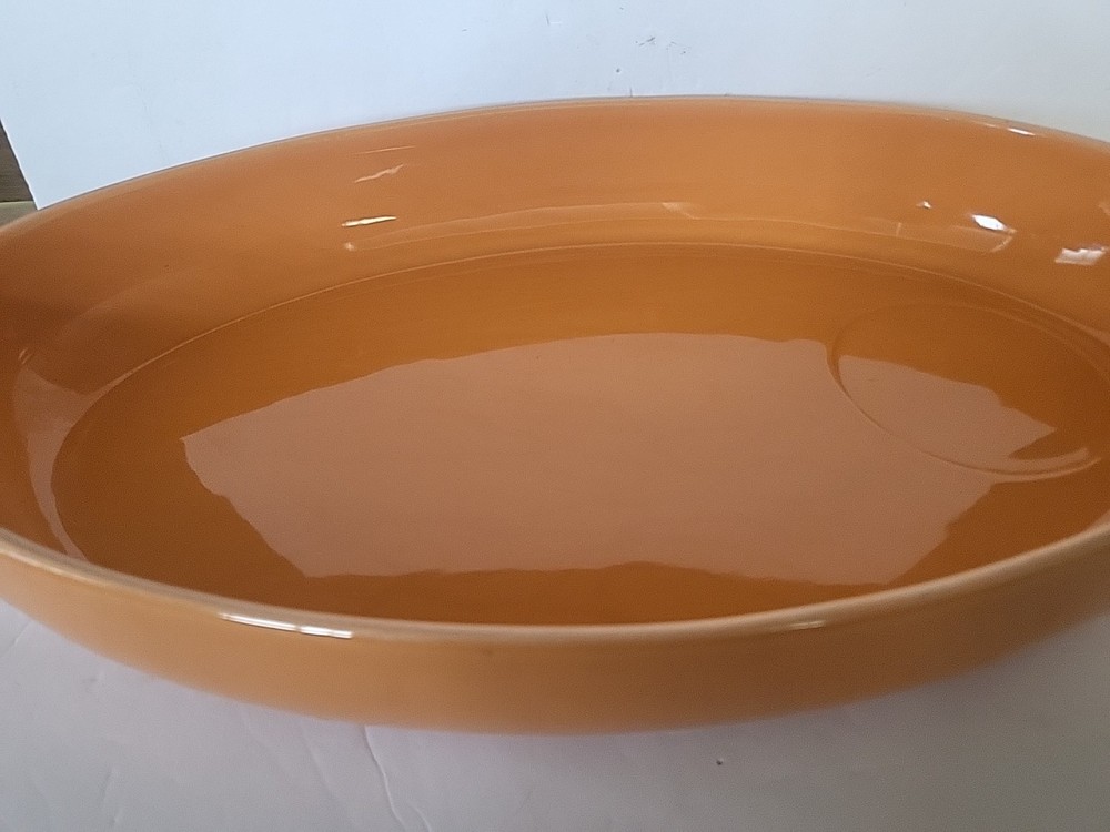 This Crate and Barrel serving set includes two pieces: a 16"x10" oval serving dish and a smaller oval chip and dip tray. Both pieces are made of ceramic and porcelain materials with a shiny finish in a solid orange color. The set features two compartments and is designed for all occasions. The serving set is tray-style and has a novelty theme with a traditional style. It is easy to fill and features a dishwasher, freezer, microwave, and refrigerator safe design. The set is oven-safe and has a depth of 2 inches. Made in Portugal, this serving set is perfect for any home and garden, kitchen, dining, and bar settings.