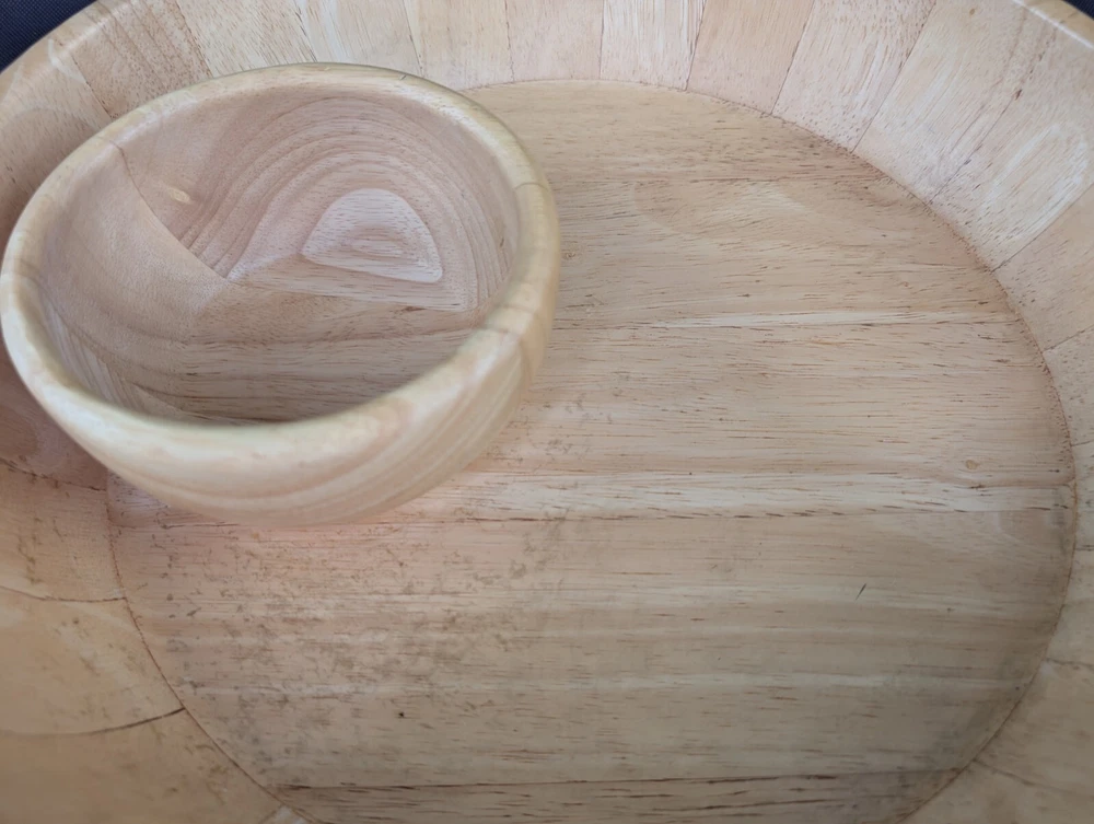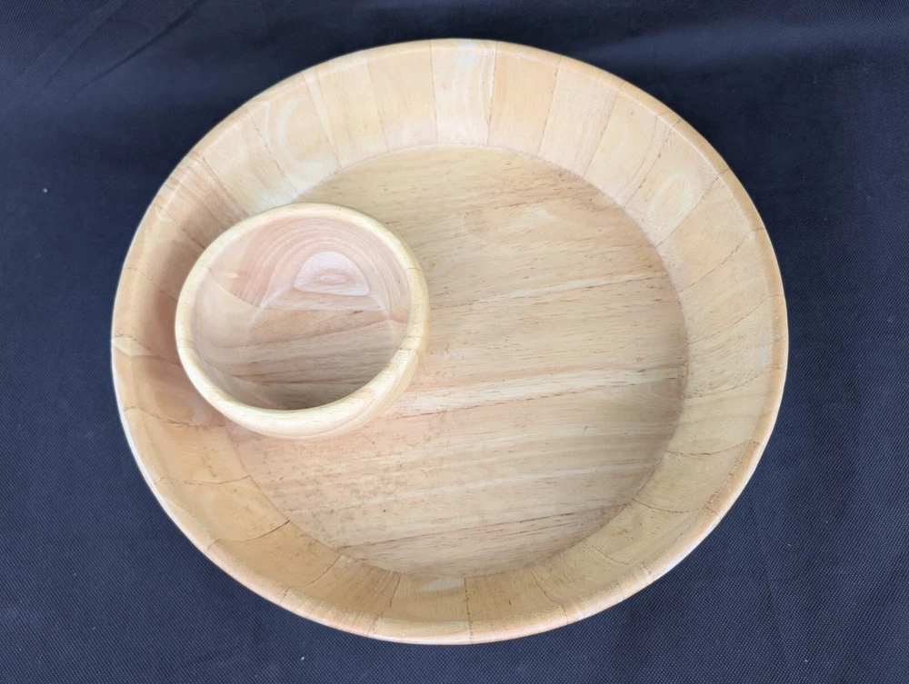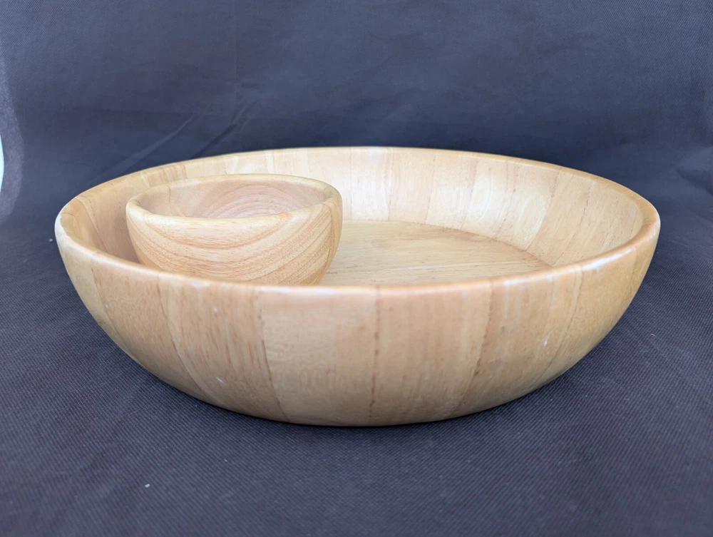 Crate & Barrel Natural Wood Extra Large Chip & Dip Serving Bowl Platter Appetizer 14"...