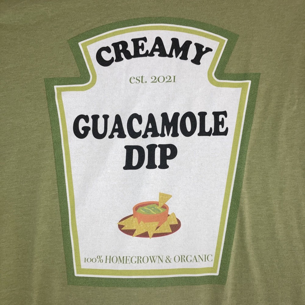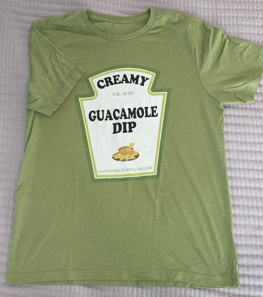 Worn once! Show off your love for Guacamole with this Creamy Guacamole Dip Men's T-Shirt. Featuring a solid green color with a crew neckline and short sleeves, this regular fit tee is made of comfortable cotton material and adorned. The graphic print design makes it a perfect addition to your American, classic, retro, or modern themed wardrobe. This XL size t-shirt is suitable for all seasons and handmade in China. Perfect for summer or fall, this shirt is great for casual outings or as a costume piece. It's part of the Guacamole product line and is sure to impress any condiment fan.