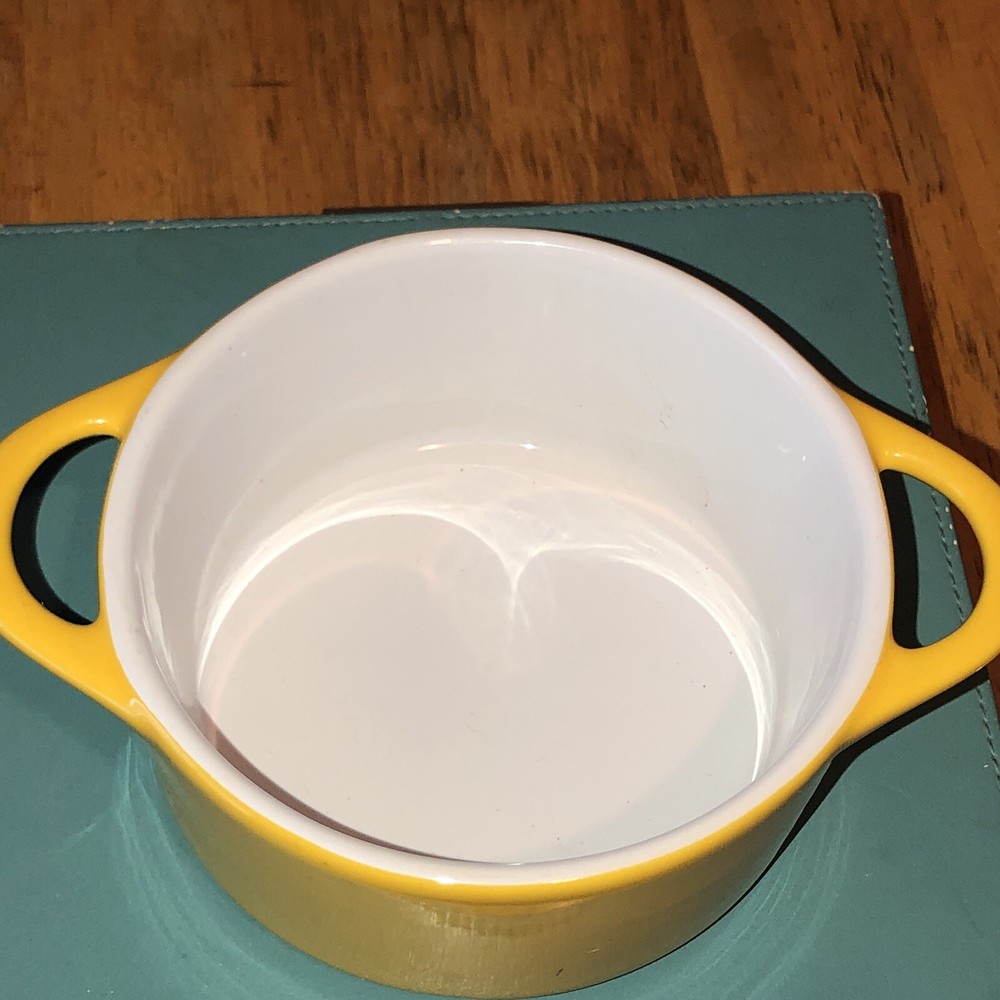 This little casserole dish is adorable and perfect for single servings! The ceramic feels sturdy, and the silver finish gives it a sleek look. Great for baking small desserts or side dishes—so cute and functional. Love that it's in excellent condition too! Highly recommend for anyone who loves mini kitchenware.
