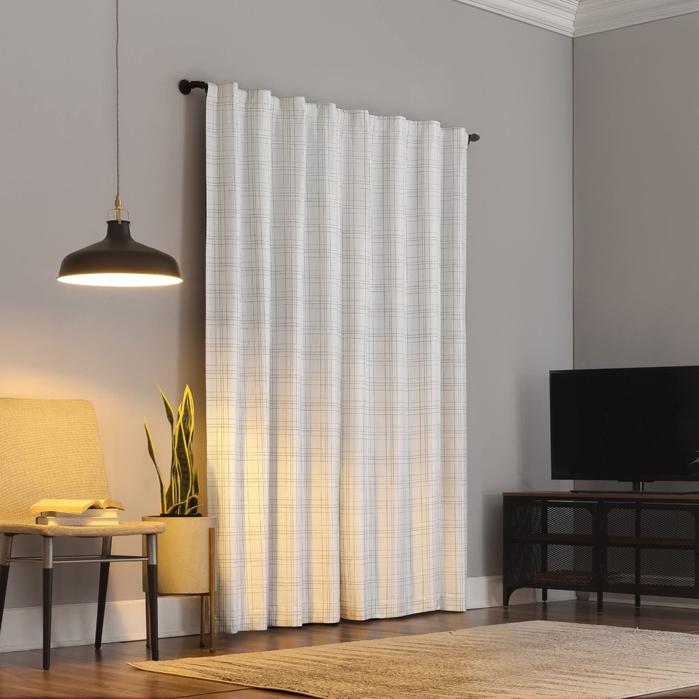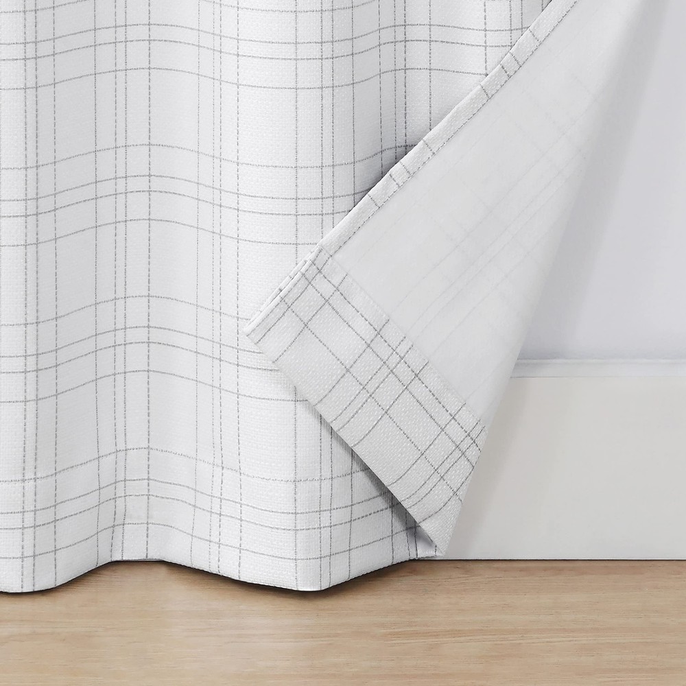 These curtains are amazing! The blackout feature really works—no light sneaks through, making my room pitch dark for perfect sleep. The thermal lining keeps my space cozy in winter and cool in summer, plus they cut outside noise noticeably. The woven plaid design adds a nice rustic touch, and the grommets make hanging them super easy. Great quality and worth every penny!