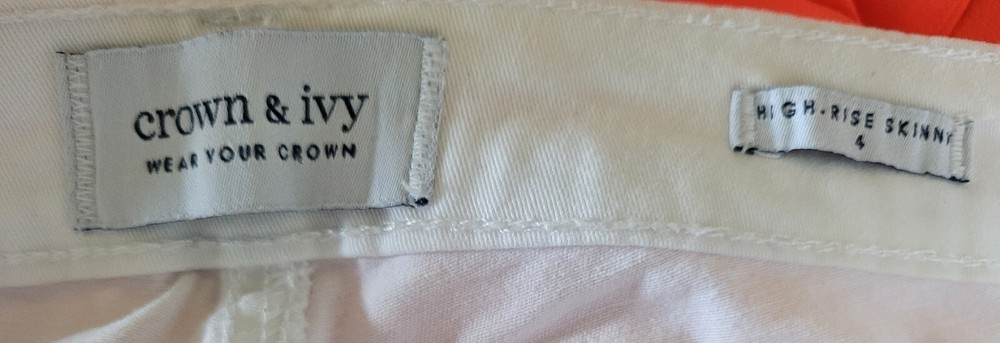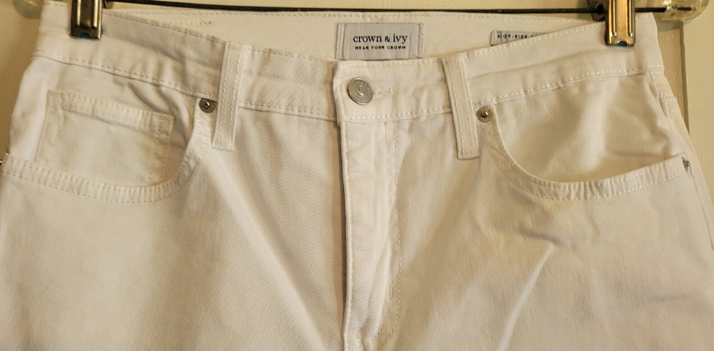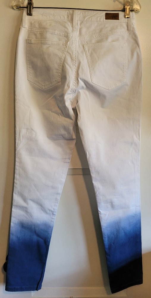 Excellent condition Crown & Ivy Dip Dyed White Blue Ombre High Rise Waist Skinny Stretch Jeans sz 4. Button/zip closure with bet loops, classic 5-pocket styling with skinny straight leg design. Approximate measurements laying flat (cotton/spandex blend so will stretch): length: 37" waist: 28" inseam: 28" Please see my other items too. thank you!