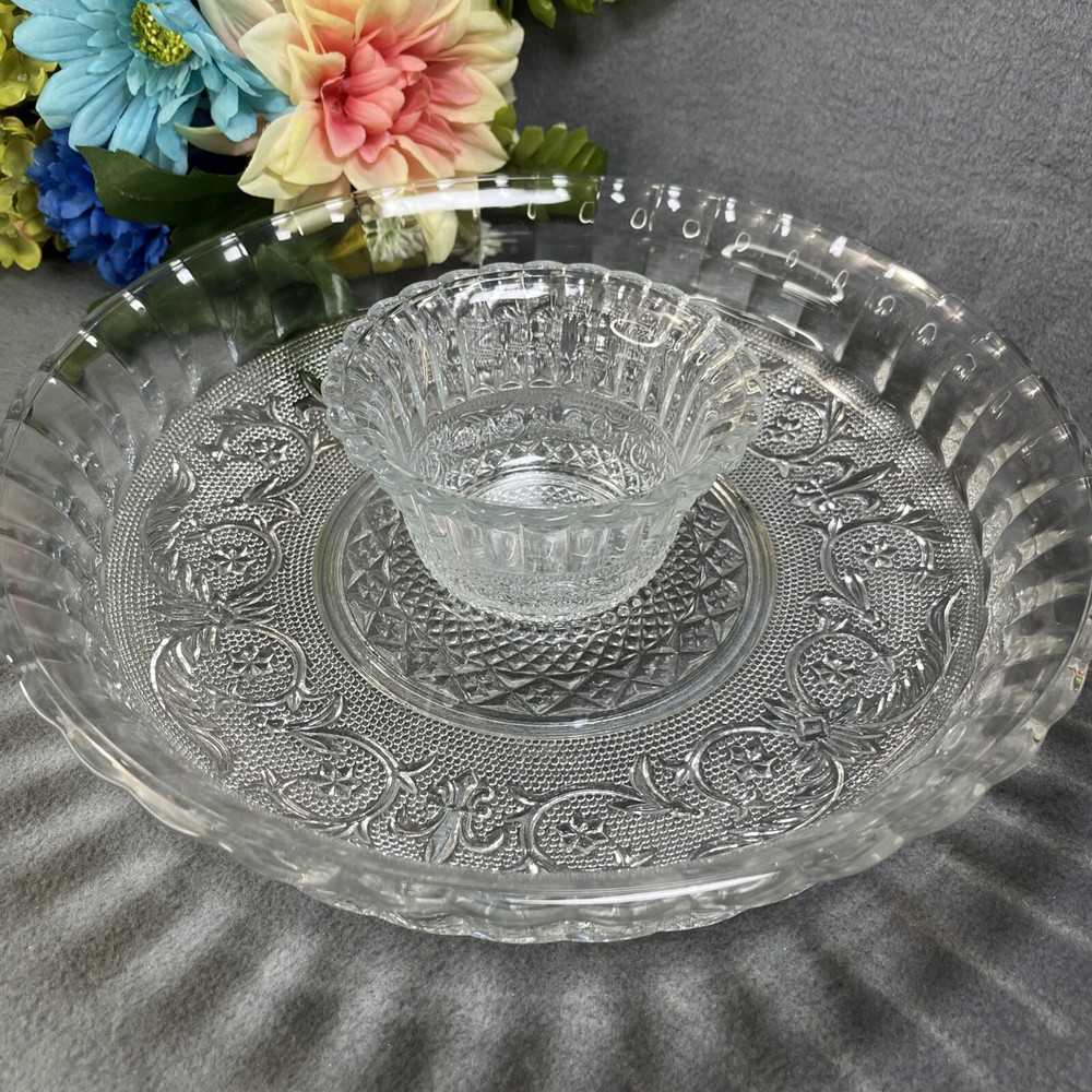 Absolutely love this vintage chip and dip tray! The trellis pattern is so elegant, and it's in perfect condition—no cracks or chips. The removable center bowl is super convenient for parties. A stylish and functional piece that adds a retro touch to any gathering!