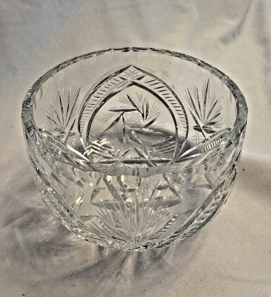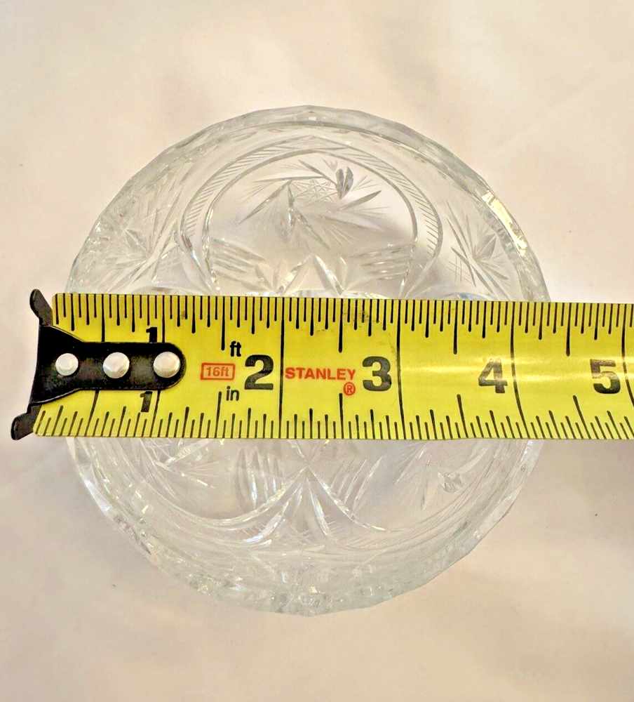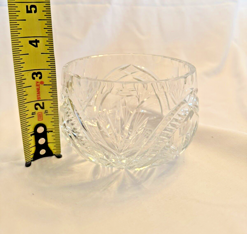 Add a touch of elegance to your home decor with this stunning crystal rose bowl flower vase. The round, clear cut glass design features a spinning star and a beautiful rose subject that will add a touch of contemporary style to any room. Measuring 3 inches in height and 4.5 inches in width, this original, studio crafted piece is perfect for displaying your favorite flowers or as a standalone decorative item. The bowl globe sphere model and flower theme make it a unique and eye-catching addition to any collection. (Location: Crystal F)