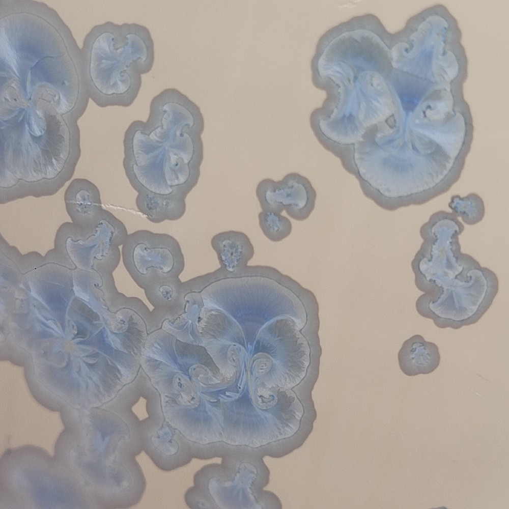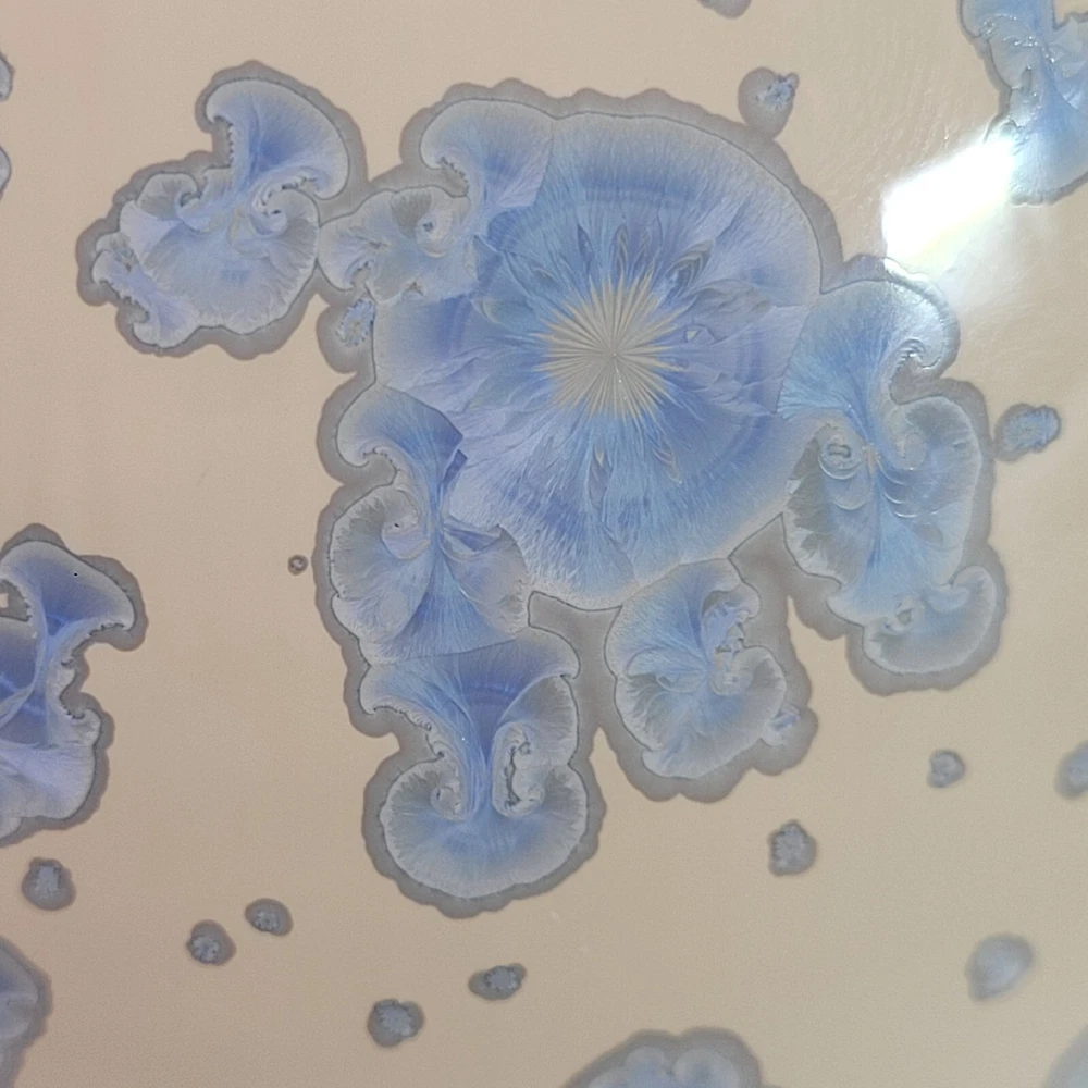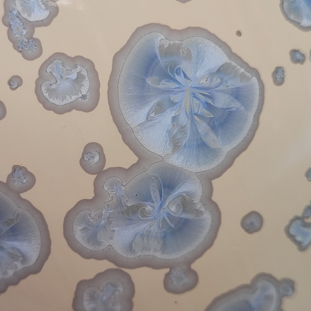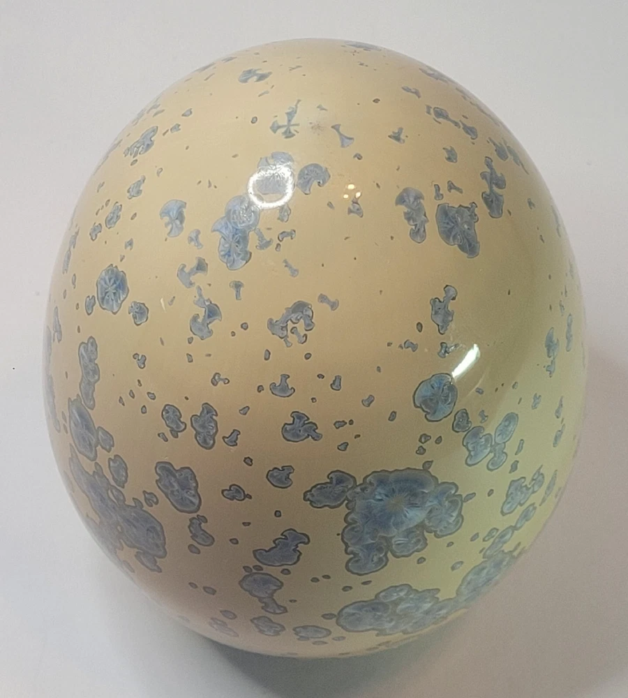Vtg Crystalline Art Pottery Egg Cream W/ Blue Crystals Cabinet/Shelf Art 5" '90s. Hollow. Lovely pottery egg with a blue crystalline design. Great addition to a pottery collection. Egg is in good preowned vintage condition. No chips or cracks. Please enlarge pics.