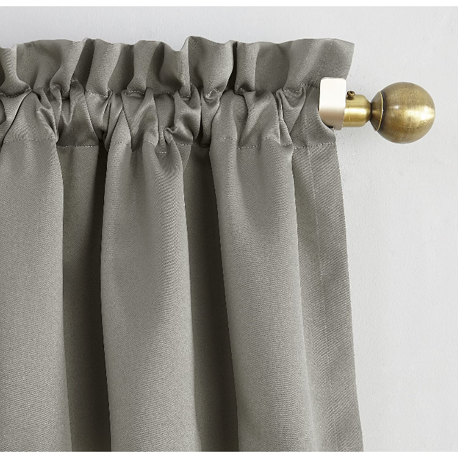 1 ~ Room Darkening Rod Pocket Curtain Panel 100% Polyester Room Darkening technology blocks out some unwanted light while enhancing privacy Energy efficient design reduces energy lost through your windows by up to 25% Thermal properties help keep summer heat and winter chill out of your home Noise reduction up to 25% helps you get a sounder, more uninterrupted sleep Built-in rod pocket fits curtain rods up to 1.5" in diameter One PanelItem comes from a smoke free/ pet free home unless otherwise stated above.