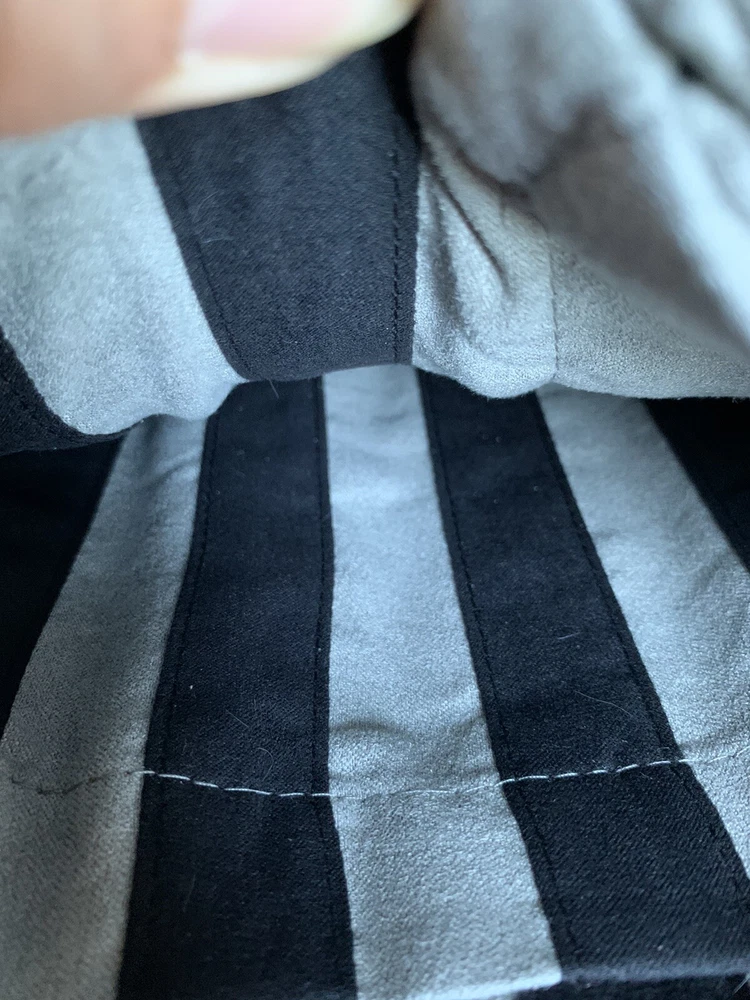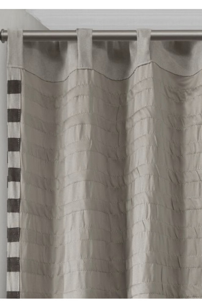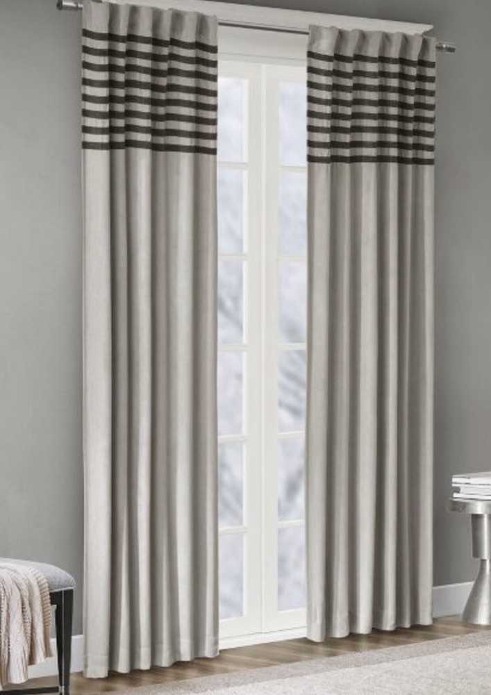 Curtain Panel Pair - Gray Black Stripes - 2 Panels - 42x95" - New This item is in new condition, Packaging has been opened. You will receive TWO panels as pictured. Sophisticated curtains that amp up the style to your living space Number of pieces: 2 Textile material: Polyester Includes: 2 curtain panels Hanging style: Rod pocket Sophisticated, chic, and oh-so necessary, this Connell Curtain Panel Pair will have you giddy with joy. It comes in a lovely shade of gray and features a stripe pattern that would look great in just about any home's décor. For easy care machine wash. This package includes 2 curtain panels. Number of Pieces: 2 Dimensions (Overall): 95.0 Inches (L), 42.0 Inches (W) Textile Material: 100% Polyester Includes: 2 Curtain Panels Indoor/Outdoor: Indoor Textile construction: Plain Weave Hanging style: Rod Pocket, Back Tab Light filtration: Room Darkening Care & Cleaning: Machine Dry, Machine Wash