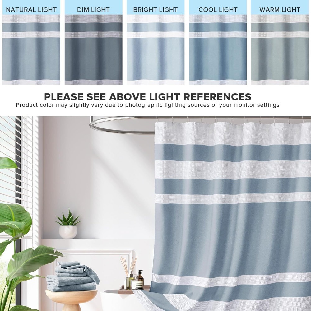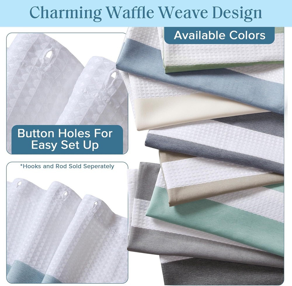 This shower curtain is a game-changer! The waffle weave design adds a spa-like elegance to my bathroom while being super absorbent. The fabric feels high-quality, dries quickly, and doesn’t cling. Love the pieced detailing—it looks way more expensive than it is. Easy to hang and clean, plus it stays in place perfectly. Definitely worth every penny!
