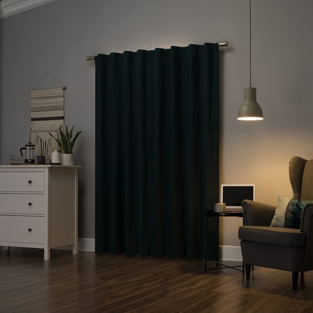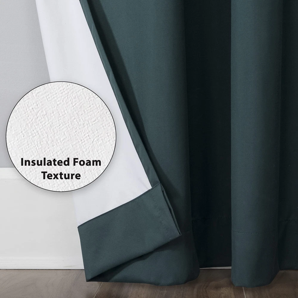 Total Blackout technology blocks out 100% of outside light while enhancing privacy Thermal insulation helps keep summer heat and winter chill out of your home Energy efficient design reduces energy lost through your windows by up to 35% Noise reduction up to 35% helps you get a sounder, more uninterrupted sleep Built-in metal grommets fit curtain rods up to 1.5" in diameter Pair includes (2) panels. Measure carefully prior to purchase.