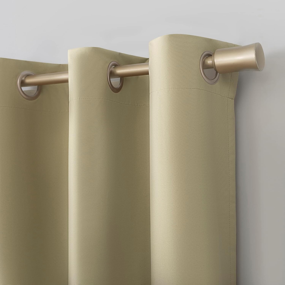 Item Package Dimension: 10.7L x 8.2W x 1.4H inches Item Package Weight - 1 Pounds Item Package Quantity - 1 Product Type - CURTAIN Sun Zero Cyrus Thermal 100% Blackout Grommet Curtain Panels provide the ultimate in light blocking technology to keep out even the harshest of light while adding energy efficiency to any room of your home. Sun Zero Total Blackout technology is laboratory tested to block out 100% of light, reduce outside noise by up to 35%, and decrease energy lost through your windows by up to 35%. Comfort is optimized with thermal insulation that helps keep summer heat and winter chill out of your home. Equipped with built-in metal grommets for easy hanging on standard curtain rods up to 1.5" in diameter. Hang in your entertainment room to eliminate screen glare and reduce distracting outside noise, or in your bedroom for enhanced privacy and a sounder, more uninterrupted sleep. Sold as individual panels measuring 40" width by 63" length in color soft gold. Measure carefully before selecting your desired size and quantity. Rod not included. Machine wash cold on gentle cycle. Use non-chlorine bleach when needed. Tumble dry on low heat, using a cool iron as needed.