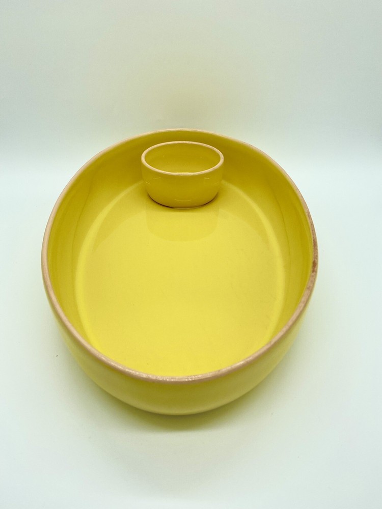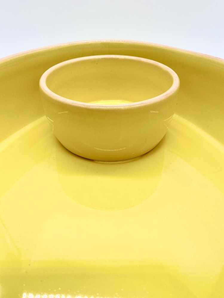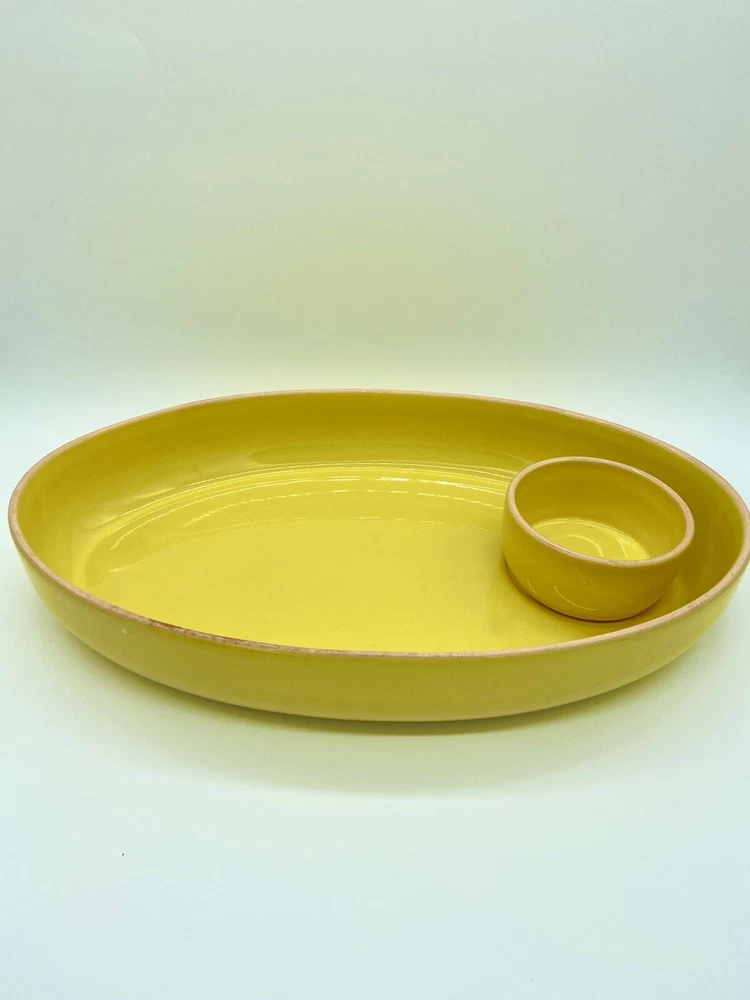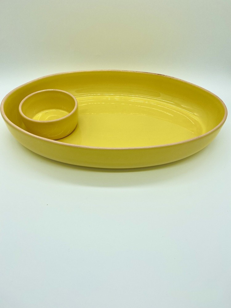 Studio D Large Bright Yellow Chip and Dip Serving Tray. One area of tray rim has some darkening that may be removable. No chips or cracks observed. Please see all photos as part of the description.