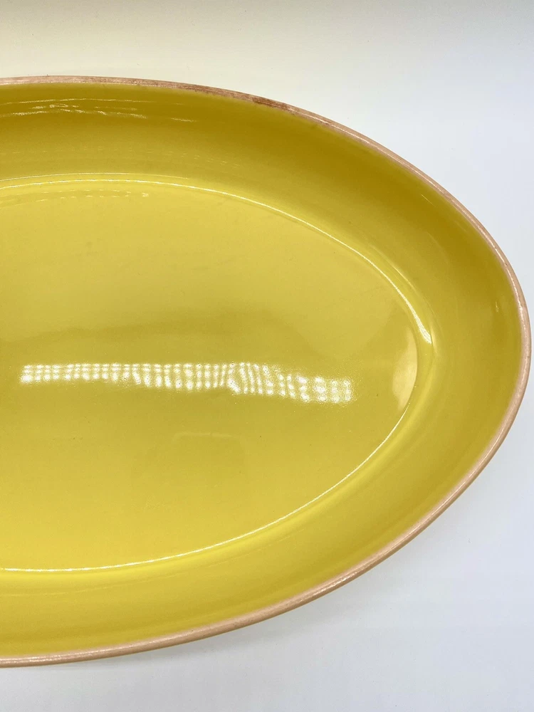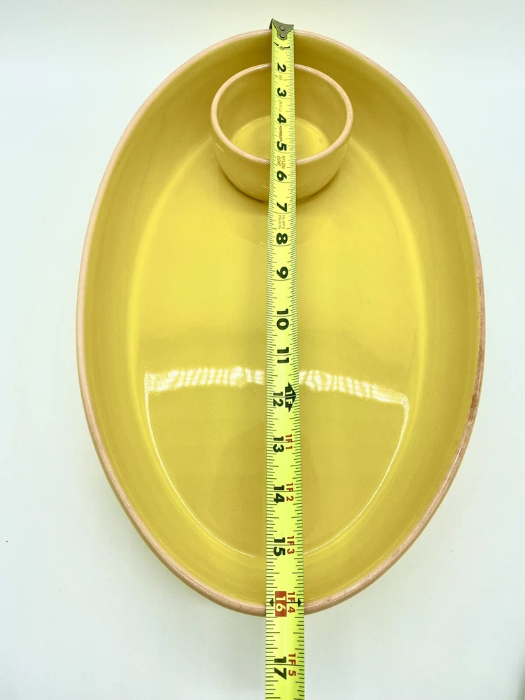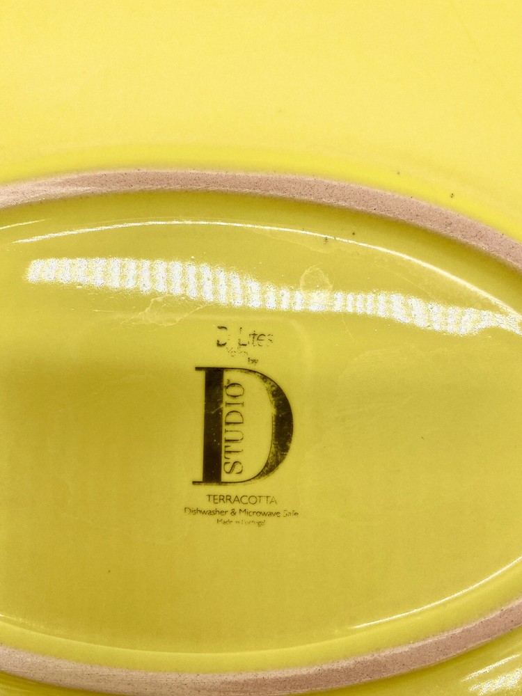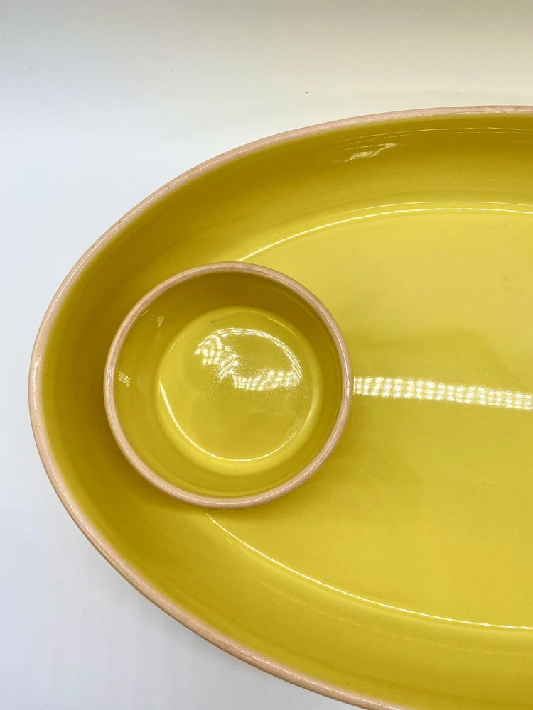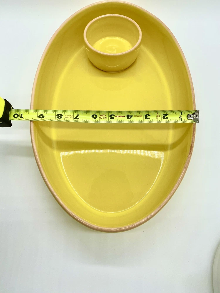 Studio D Large Bright Yellow Chip and Dip Serving Tray. One area of tray rim has some darkening that may be removable. No chips or cracks observed. Please see all photos as part of the description.