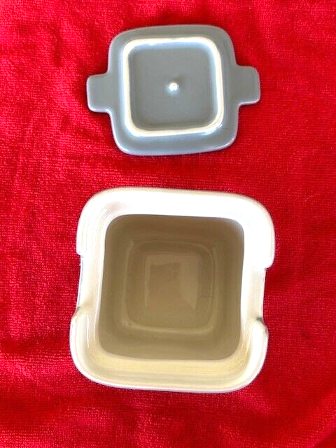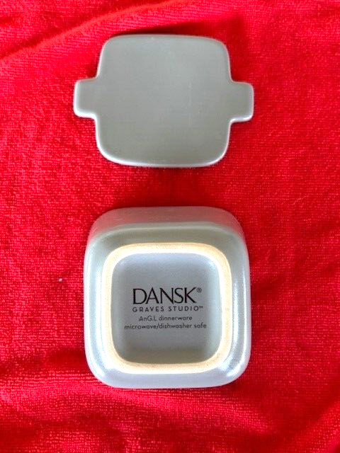 DANSK Graves Studio Ang.L Slate Gray/White Sugar Bowl w/Lid EUC. Excellent-used condition with no chips, cracks, scratches, discoloration, color loss. From a very clean estate. Measures about 3-1/4" x 3-1/2" with 4" including tabs on lid. Any glare is from lighting. Please message me with questions, thank you for your interest.