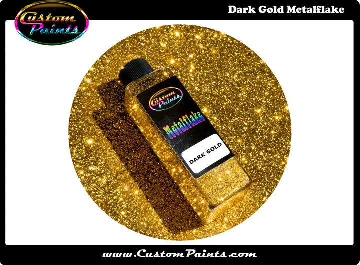 This item is for 6oz of DARK GOLD Metal Flake Medium size .008 Hex Metal Flake Application: Apply Custom Paints Inc Metal Flake over any base color to produce a real custom effect. We recommend adding the Metal Flake to our Flake Carrier but you can add them to a Automotive solvent or water based 1k or 2k Clear coat, Clear base coats (Candies etc) and Clear Varnish. Depending on how heavy you want the flake effect, will depend on how much you will need. Always spray test panels before spraying you product or project to see the effect you desire. Start by prepping your project as you would any other paint job. (Sand, Prime, etc.) Apply 2-3 coats of Base coat. Add the Metal Flake to a Clear base coat or Clear coat and stir well. Apply the Metal Flake until you get the effect you desire. Apply our 2k Show Clear until the Metal Flake is fully covered and you have full Gloss. Spray Gun Size for Metal Flake: (SMF) Small Flake is our fine cut flake at .004 x .004 hex . SMF flake size can be sprayed through most large size tip airbrushes, as well as HVLP full and detail sized spray gun equipment with a 1.0 nozzle set-up or larger. SMF lays down much flatter then MMF, LMF and XMF so it's easier to finish with clear. (MMF) Medium Flake is our medium cut flake at .008 x .008 hex . MMF flake size has a sparkling brilliance that is easy to use.MMF can be sprayed out of HVLP and conventional spray equipment with a minimum of 1.5 nozzle set-up or larger. (LMF) Large Flake is our large cut flake at .015 x .015 hex . LMF flake size has double the amount of sparkling brilliance of the LMF and has been used in the custom market for many years. LMF can be sprayed out of HVLP and conventional spray equipment with a minimum of 1.8 nozzle set-up or larger. METAL FLAKE Custom Paints Inc Metal Flakes are the HIGHEST grade you can buy, there are ultra thin, easy to smooth out and have outstanding sparkle. Our Metal Flakes are solvent proof and wont fade in sunlight as they have a high uv coating on them. we have had 1000s of customers use our flakes and continue using us all the time. Apply our Metal Flakes over any base color to produce a real custom effect. The Metal Flake can be added to solvent or water based Products, Clear Coats, base coats and Varnish. Custom Paints Inc offers 3 types of Metal Flake: Metal Flake, Prism Flake and Holographic Flake. Metal Flake is available in Small (004 Hex), Medium (008 Hex), Large (015 Hex) The unique Metal Flake color range: SILVER METAL FLAKE GUNMETAL METAL FLAKE BLACK METAL FLAKE GOLD METAL FLAKE DARK GOLD METAL FLAKE BRONZE METAL FLAKE COPPER METAL FLAKE ORANGE METAL FLAKE WINE RED METAL FLAKE FLAME RED METAL FLAKE PINK METAL FLAKE FUCHSIA METAL FLAKE PURPLE METAL FLAKE CLEAR METAL FLAKE SKY BLUE METAL FLAKE BLUE METAL FLAKE DEEP BLUE METAL FLAKE GREEN METAL FLAKE EMERALD METAL FLAKE BLURPLE METAL FLAKE The Prism Metal Flake comes in 1 size (008 Hex). The Prism Metal Flake Color Range: GREEN PRISM METAL FLAKE RED PRISM METAL FLAKE GOLD PRISM METAL FLAKE BLUE PRISM METAL FLAKE RAINBOW PRISM METAL FLAKE The Holographic Metal Flakes are available in Medium (008 Hex) and Large (015 Hex). The Holographic Metal Flake Color Range: SILVER HOLOGRAPHIC METAL FLAKE GOLD HOLOGRAPHIC METAL FLAKE BLUE HOLOGRAPHIC METAL FLAKE RED HOLOGRAPHIC METAL FLAKE ORANGE HOLOGRAPHIC METAL FLAKE PINK HOLOGRAPHIC METAL FLAKE GREEN HOLOGRAPHIC METAL FLAKE PURPLE HOLOGRAPHIC METAL FLAKE BLACK HOLOGRAPHIC METAL FLAKE SAPPHIRE HOLOGRAPHIC METAL FLAKE FUCHSIA HOLOGRAPHIC METAL FLAKE About Us Custom Paints Inc has now opened in Florida and is part of the European company Custom Paints Ltd located in the United Kingdom. Custom Paints Ltd is Europe's leading custom paint manufacturer who have been developing and supplying new, innovative special effect paints worldwide for over 15 years. Custom Paints Ltd ensures that all products manufactured exceed market expectations and are made using only the highest quality materials available. Custom Paints Ltd products are not limited to only the automotive sector; our coatings also have many other applications including architectural and industrial. These coatings can be applied to almost any surface that can be painted including plastics, glass, canvas, metals, wood and much more. Custom Paints Ltd is divided into 3 Brands: Kustom Canz, Specialist Paints and Inspire "Airbrush Paints". Metal Flake Aerosol Cans (Also Available in our eBay store) Our award winning Metal Flake is available in a Aerosol can. Our Aerosol cans give high output with excellent atomization and high transfer efficiency with no pressure drop during application. Using our aerosol cans saves you time & labor with no paint mixing or Spray gun cleaning. To get the best result from our Metal Flake aerosol cans we recommend using our 2K CLEAR-COAT CANZ. 2K CLEAR-COAT CANZ is the best 2k aerosol on the market!! Delivery information Most orders are shipped within 24 to 48 hours of receipt of payment. Orders received on weekends & holidays may require additional shipping time. We ship our orders with UPS MAIL, UPS GROUND or USPS. If you haven’t received your order within 14 days please contact us. WARRANTY Be aware of some cheap Metal Flake, Pearls and Paints on eBay as many won't be covered by any warranty, Custom Paints Ltd ensures that all products manufactured exceed market expectations and are made using only the highest quality materials available. Custom Paints Inc are able to give you a quality product with full backup and guidance on applying our products. Many of our Paint colours are available in water base. Please call us if you have any questions on our water based products. Returns Policy: Custom Paints Inc will accept returned items but items must be returned with in 14 days unused and saleable condition. All items must be returned with out the bottle or tin being opened. Please contact us before returning any items. Thank you. USA Office & Showroom Address: Custom Paints Inc 9632
