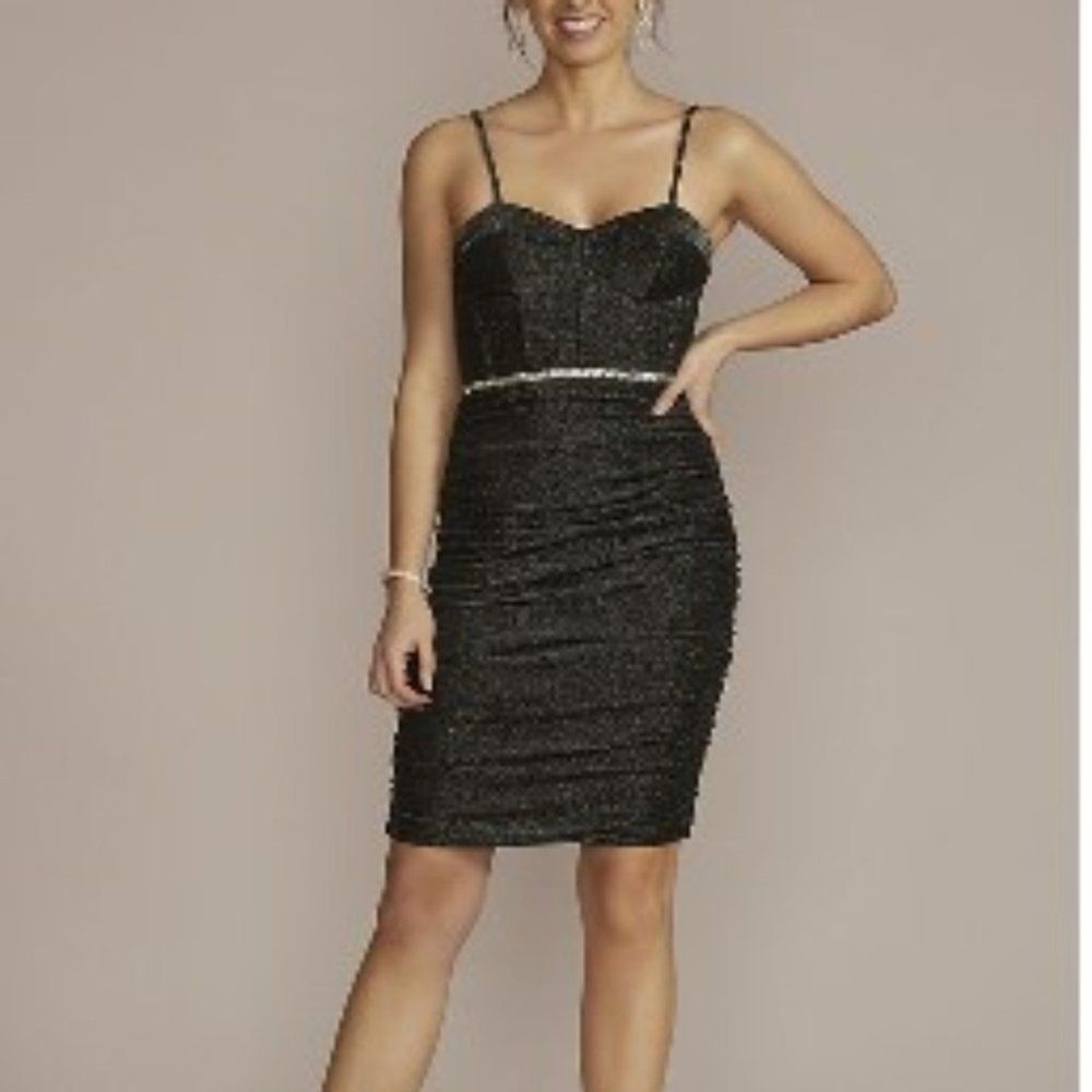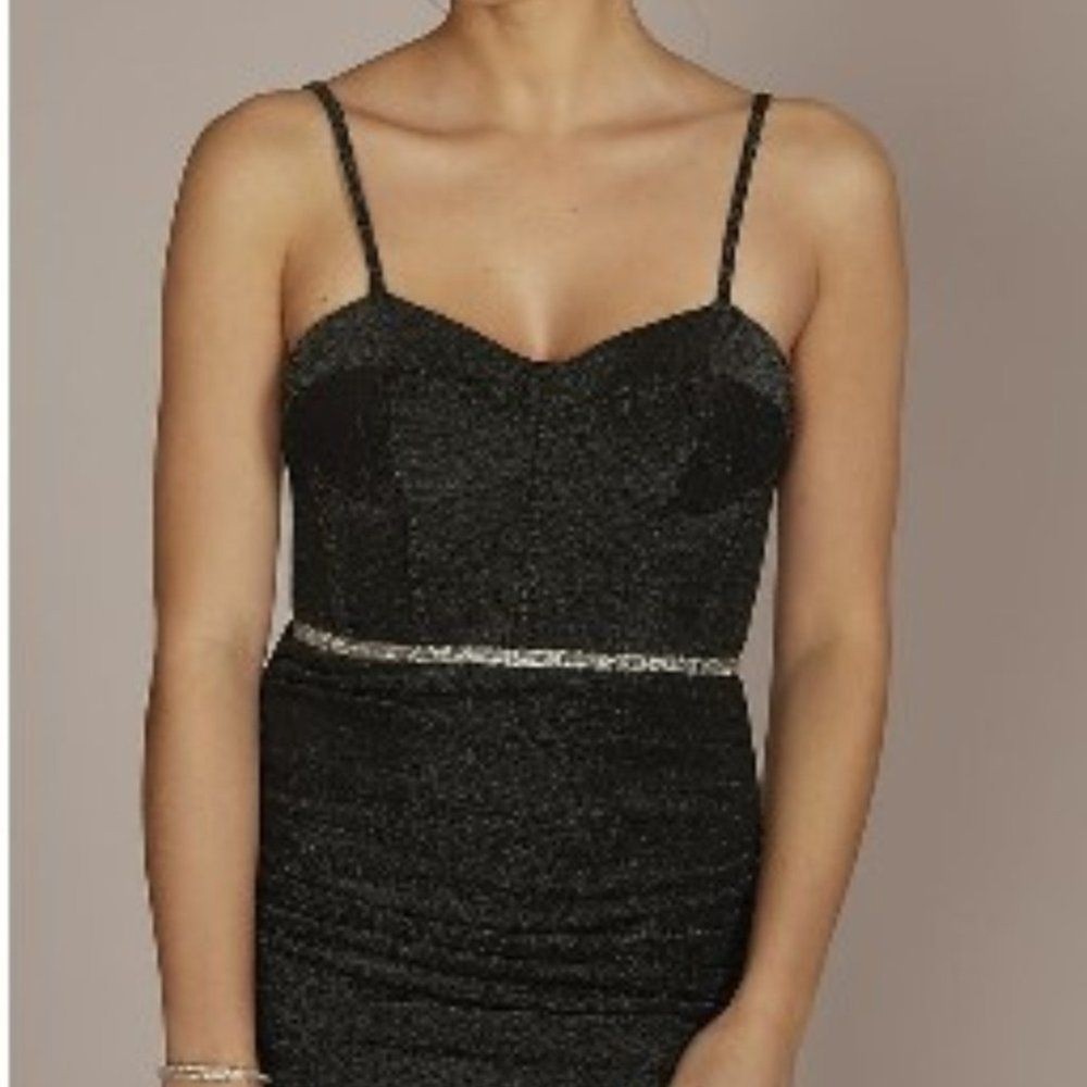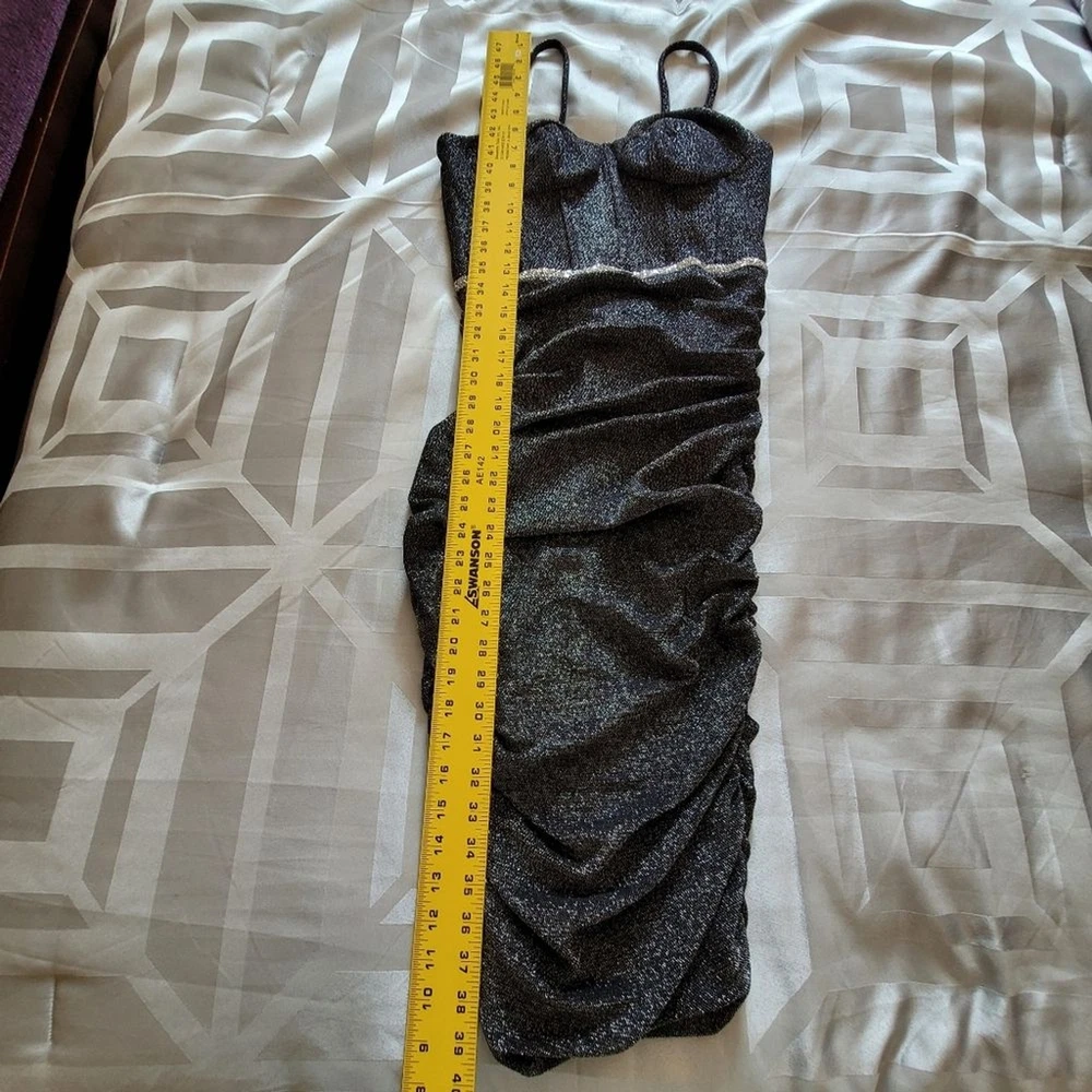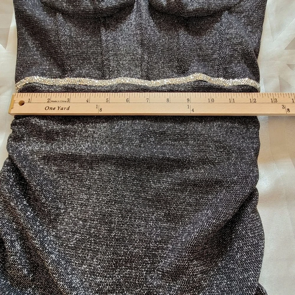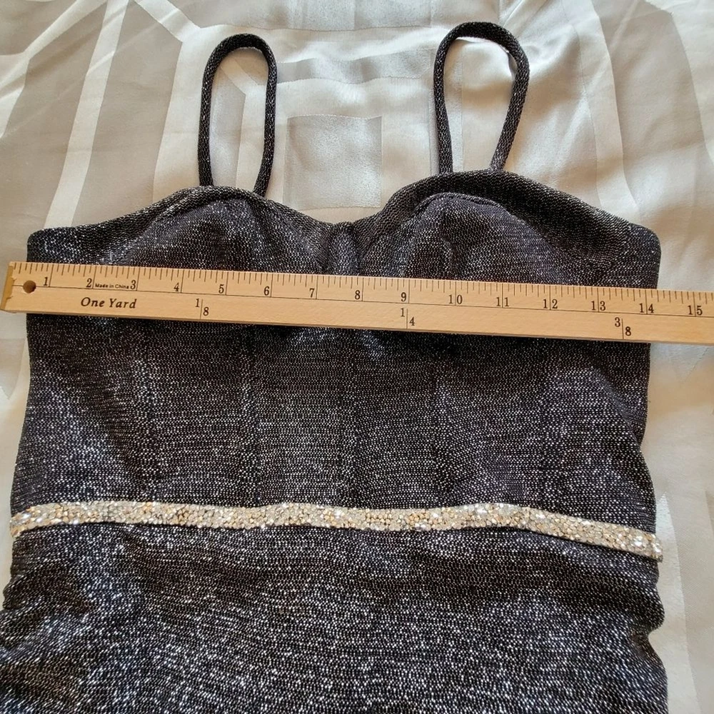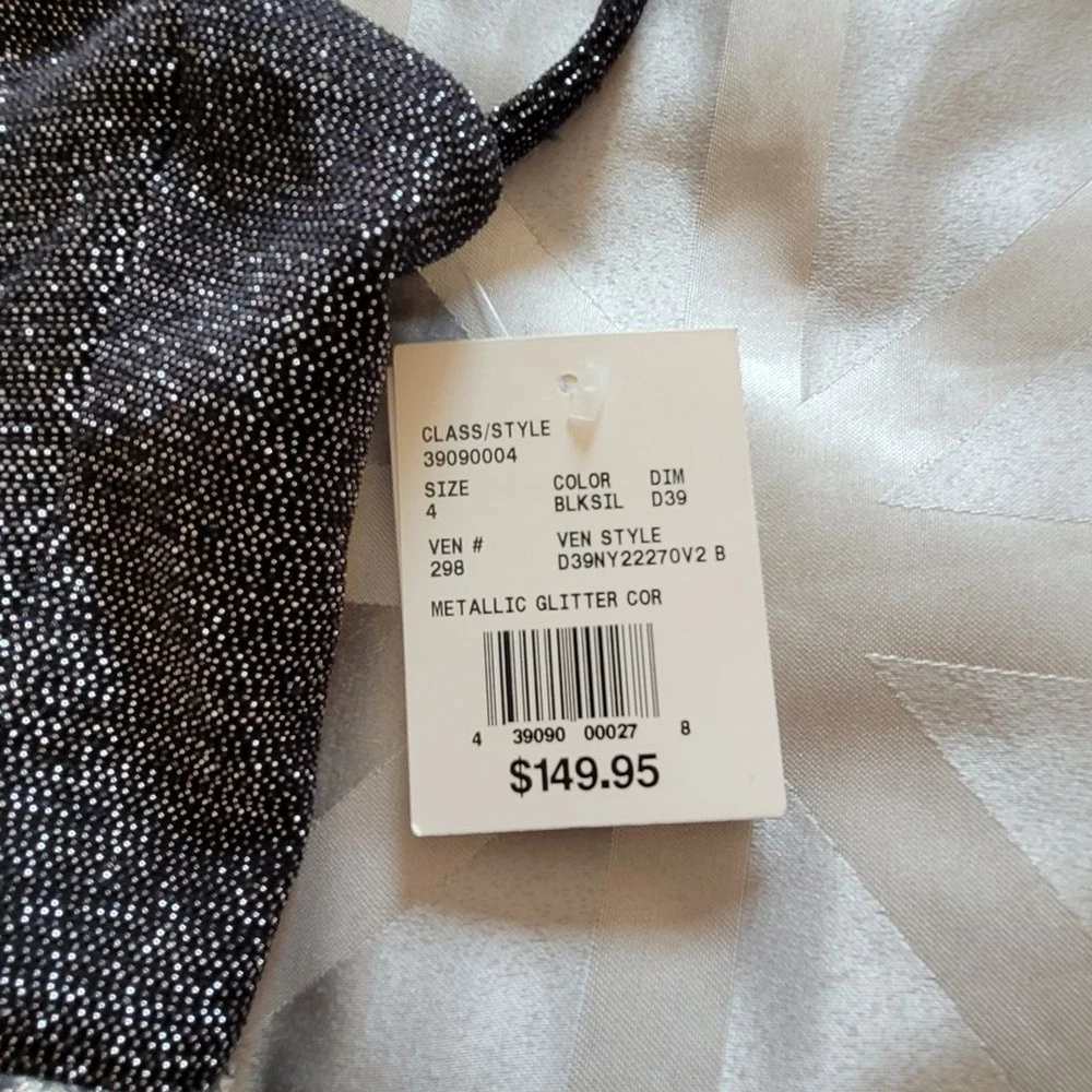 DB Studio Black Metallic Sweetheart Corset Midi Dress - New With Tags - Size: 4 - Color: Black Metallic - Shimmering Sparkle Stretch Dress - Hi-Waist Silver Detail - Corset Detail - Party Dress, Black Dress, Semi-Formal Dress, Cocktail Dress - Homecoming, Holiday, Christmas, Prom, New Year's Eve - Hidden Back zipper - Fully lined - 89% Nylon, 8% Metallic, 3% Spandex - Smoke-Free Home