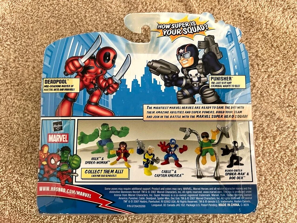 LOT Of FIVE Assorted DEADPOOL ACTION FIGURE Sets You will receive all items pictured in this offering as follows: Marvels Greatest Battles -- Deadpool & Taskmaster With Comic (Hasbro, 2010) Marvel Universe -- X FORCE: Deadpool, Wolverine, Warpath (Hasbro, 2010) Marvel Comics -- X-MEN, X-Force: Deadpool & Trading Card (Toy Biz, 1995) Marvel Superhero Squad: Deadpool & Punisher (Hasbro,2007) Marvel Hall Of Fame: Deadpool (Toy Biz, 1996) All packaging is complete and sealed and nothing has ever been opened. I would describe these packages as new, old stock with no serious flaws, but minor overall wear. The carding boards are all in good shape (no warps or creases) with the exception of the bottom, back left corner of the Greatest Battle, which has a small frayed blunt. This package also has a mild, short indent at the comic spine, just below the top staple. My PACKAGING is ROCK SOLID!!! ALL PICTURES AND SCANS ARE OF THE ACTUAL ITEMS AND EVERYTHING IS STORED PROPERLY IN A SMOKE FREE ENVIORNMENT Please Check Out My Feedback History As A Seller And Bid / Buy With Confidence.