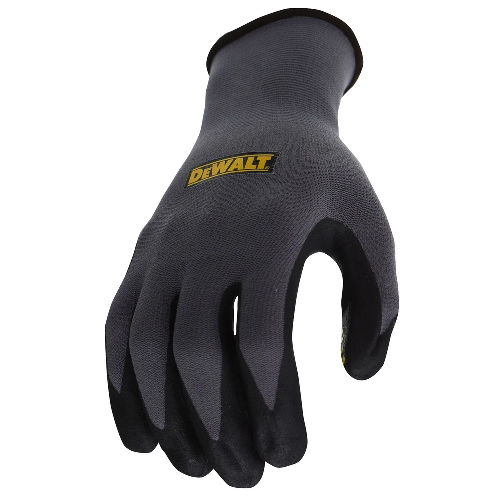 DEWALT DPG76 Tread Grip Work Glove (X LARGE)...FREE SHIPPING The DEWALT DPG76 dipped glove has a lightweight Polyester/Spandex shell which makes for an incredibly comfortable glove combining high dexterity with superior tactile sensitivity. Foam nitrile dipped palm with a raised tread grip provides outstanding gripping capabilities in handling dry, wet or greasy parts. Uses: Construction • Masonry • Machine Parts Handling Foam nitrile coating with raised tread grip for excellent grip and abrasion resistance. 13 gauge polyester/spandex shell provides a lightweight, breathable fit. Elastic cuff for a secure, comfortable fit. Payment Shipping Returns Payment Shipping Returns Paypal pament is due within 24 hours of placing order. Most items are shipped by USPS mail and leave our warehouse in 1-2 business days. All items, except reflective strips are shipped with tracking. Tracking numbers are automatically emailed when your order is shipped. Our policy lasts 30 days. If 30 days have gone by since your purchase, unfortunately we can’t offer you a refund or exchange. To be eligible for a return, your item must be unused and in the same condition that you received it. It must also be in the original packaging. To complete your return, we require a receipt or proof of purchase. Please do not send your purchase back to the manufacturer. There are certain situations where only partial refunds are granted: (if applicable) * Any item not in its original condition, is damaged or missing parts for reasons not due to our error. * Any item that is returned more than 30 days after delivery See our other items $The DEWALT DPG76 dipped glove has a lightweight Polyester/Spandex shell which makes for an incredibly comfortable glove combining high dexterity with superior tactile sensitivity. Foam nitrile dipped palm with a raised tread grip provides outstanding gripping capabilities in handling dry, wet or greasy parts. Uses: Construction • Masonry • Machine Parts Handling <li title="Download Product Flyer">Foam nitrile coating with raised tread grip for excellent grip and abrasion resistance.</li><li title="Download Product Flyer">13 gauge polyester/spandex shell provides a lightweight, breathable fit.</li><li title="Download Product Flyer">Elastic cuff for a secure, comfortable fit.</li> DEWALT DPG76 Tread Grip Work Glove (X LARGE)...FREE SHIPPING The DEWALT DPG76 dipped glove has a lightweight Polyester/Spandex shell which makes for an incredibly comfortable glove combining high dexterity with superior tactile sensitivity. Foam nitrile dipped palm with a raised tread grip provides outstanding gripping capabilities in handling dry, wet or greasy parts. Uses: Construction • Masonry • Machine Parts Handling Foam nitrile coating with raised tread grip for excellent grip and abrasion resistance. 13 gauge polyester/spandex shell provides a lightweight, breathable fit. Elastic cuff for a secure, comfortable fit. Payment Paypal pament is due within 24 hours of placing order. Shipping Most items are shipped by USPS mail and leave our warehouse in 1-2 business days. All items, except reflective strips are shipped with tracking. Tracking numbers are automatically emailed when your order is shipped. Returns Our policy lasts 30 days. If 30 days have gone by since your purchase, unfortunately we can’t offer you a refund or exchange. To be eligible for a return, your item must be unused and in the same condition that you received it. It must also be in the original packaging. To complete your return, we require a receipt or proof of purchase. Please do not send your purchase back to the manufacturer. There are certain situations where only partial refunds are granted: (if applicable) * Any item not in its original condition, is damaged or missing parts for reasons not due to our error. * Any item that is returned more than 30 days after delivery See our other items The DEWALT DPG76 dipped glove has a lightweight Polyester/Spandex shell which makes for an incredibly comfortable glove combining high dexterity with superior tactile sensitivity. Foam nitrile dipped palm with a raised tread grip provides outstanding gripping capabilities in handling dry, wet or greasy parts. Uses: Construction • Masonry • Machine Parts Handling Foam nitrile coating with raised tread grip for excellent grip and abrasion resistance. 13 gauge polyester/spandex shell provides a lightweight, breathable fit. Elastic cuff for a secure, comfortable fit.
