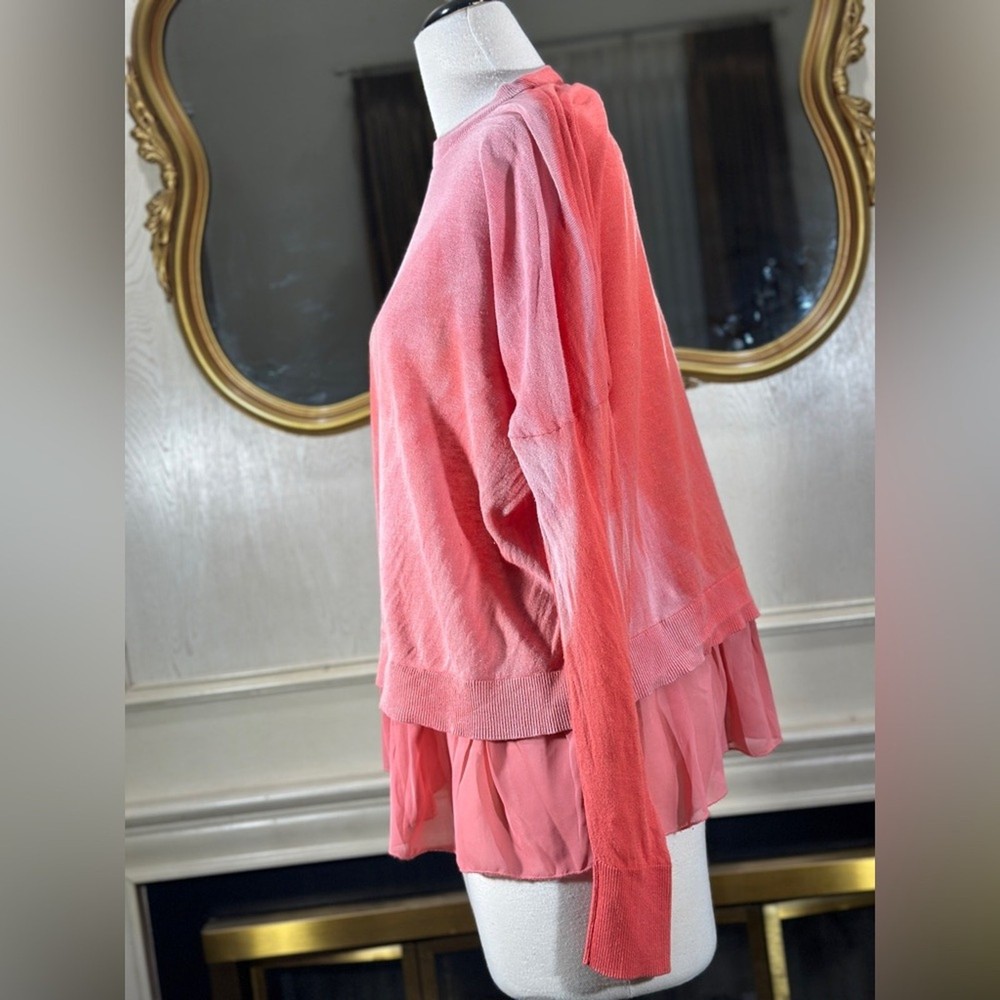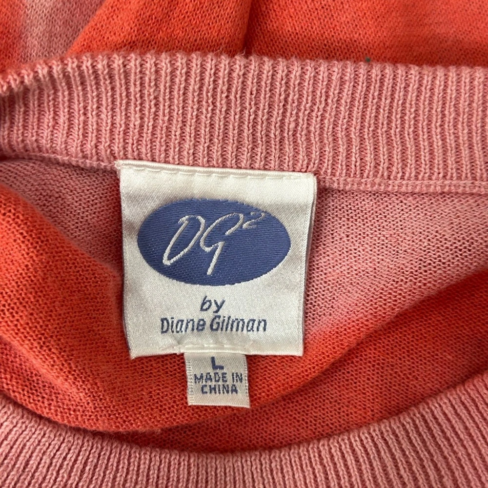 <![CDATA[<div>DG2 by Diane Gilman Pink Dip Dye Sweater Top Size L Layered Hem Pullover Boho Feminine Add a playful pop of pink to your wardrobe with this DG2 by Diane Gilman long sleeve sweater top. Featuring a fun dip dye/ombre wash in shades of coral and blush, this lightweight pullover blends casual comfort with feminine flair thanks to its layered chiffon hem and relaxed fit. Details: • Brand: DG2 by Diane Gilman • Size: Large • Color: Pink/Coral ombre • Fabric: 55% Linen / 45% Cotton | Trim: 100% Polyester • Features: Long sleeves, ribbed crewneck, flowy layered chiffon hem, pullover style • Care: Hand wash cold, lay flat to dry Measurements (approximate, taken flat): • Pit to pit: 29.5” • Shoulder to hem (sweater knit layer): 22” • Shoulder to hem (to bottom of chiffon trim): 27” Great for a relaxed, layered look that offers extra coverage. Condition: Good vintage condition – some light pilling throughout from normal wear, but no holes or stains. Clean and ready to wear! Style Tip: Pair with jeans and sneakers for an effortlessly chic daytime outfit. Ships fast from a smoke-free home.