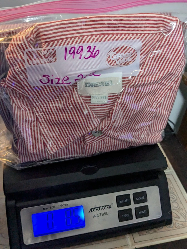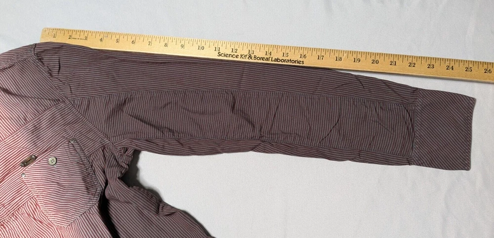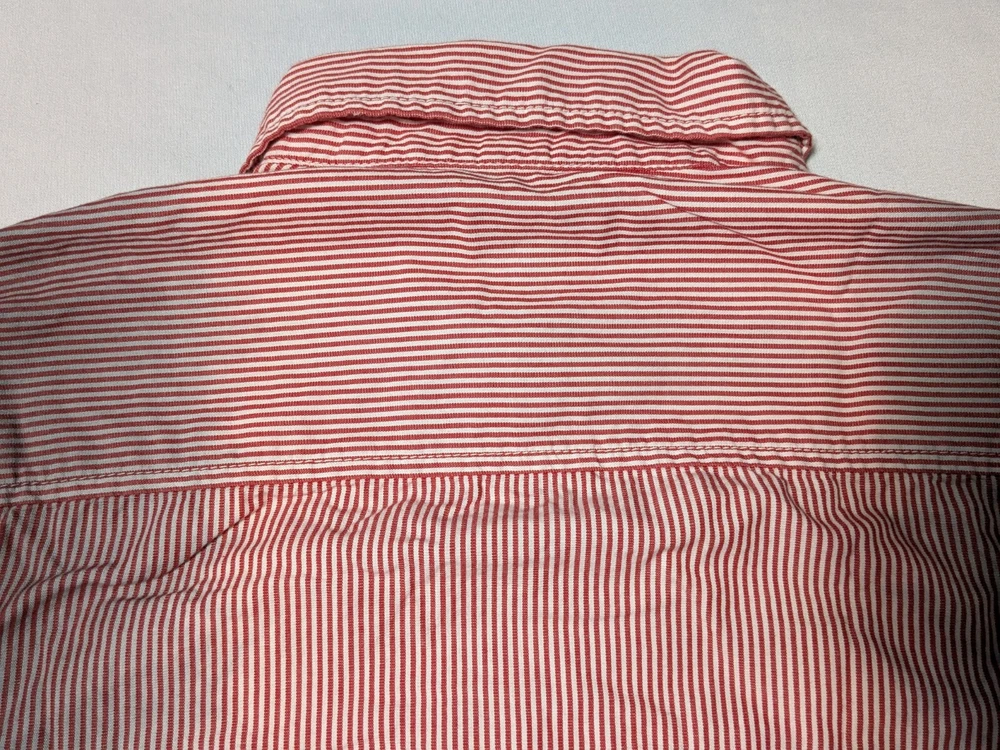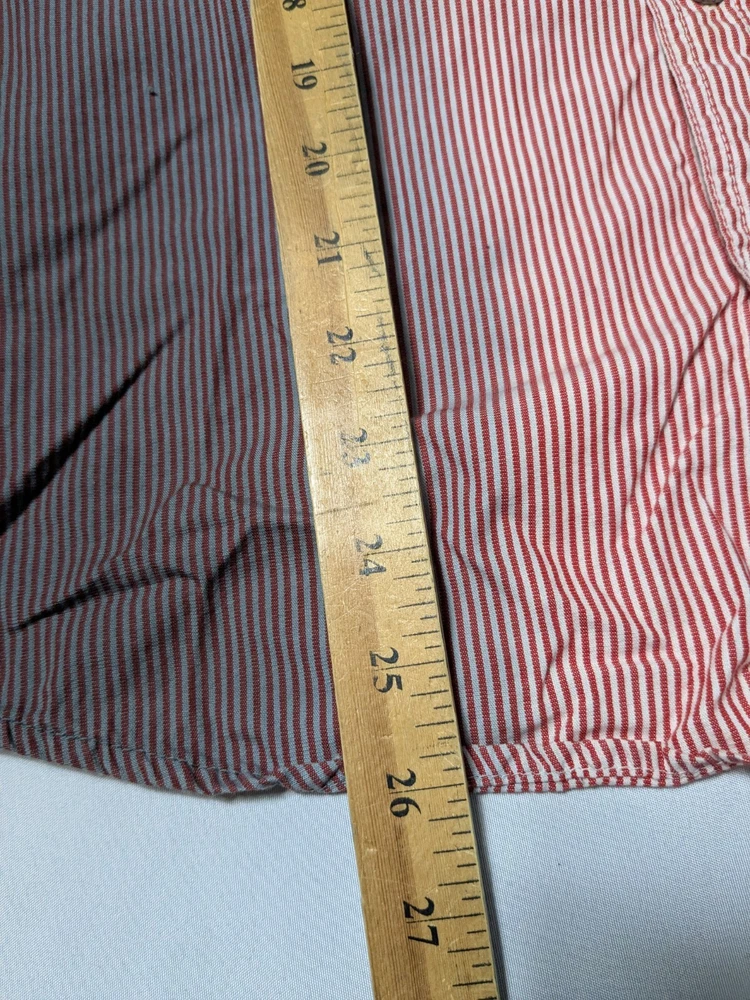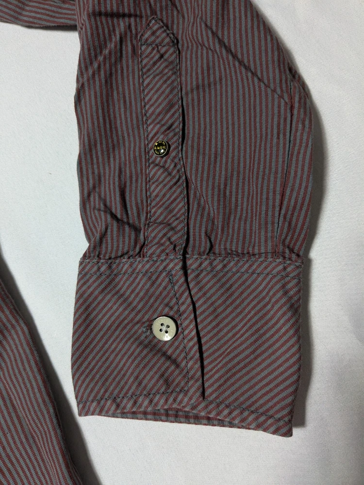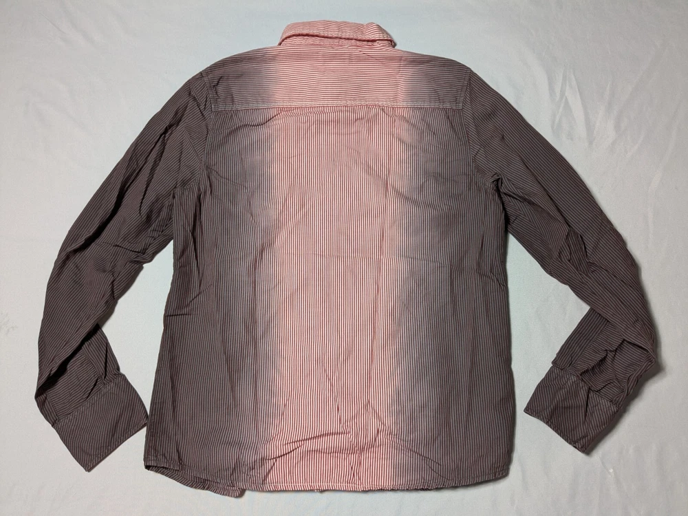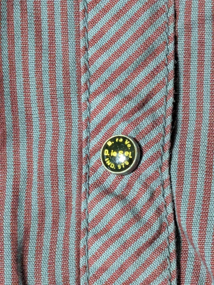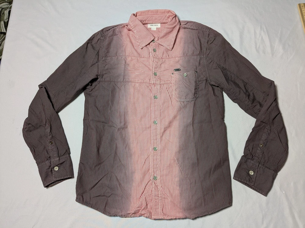 DIESEL Boys 2XL Red Dip Dye Pinstripe Button-Up Long Sleeve Shirt In Great Pre-owned Condition with no major flaws and missing material tag; IMO, if feels like cotton, as pictured. Please see photos, read description for item condition, and check measurements for size. Please note that manufacturers may have different measurements for their sizes, so please check my measurements to ensure item will fit. 19936