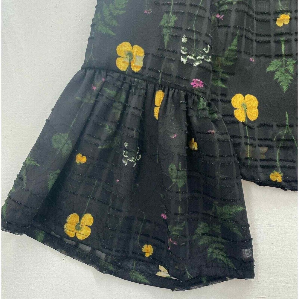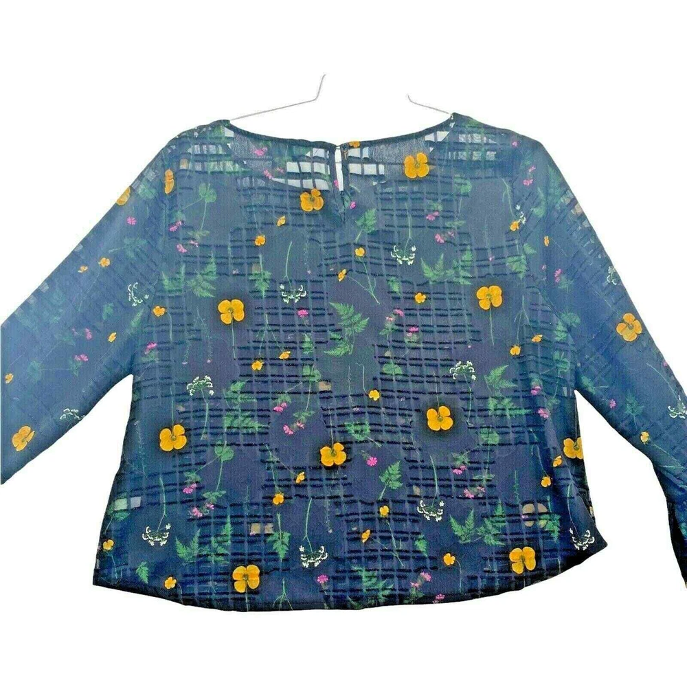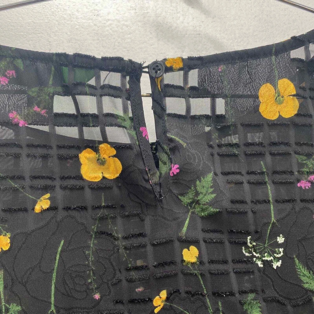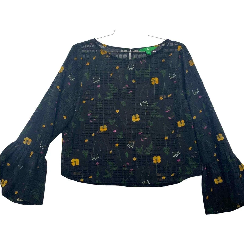 <![CDATA[<div>DIP Black Sheer Pink Yellow Floral Print Bell Sleeve Crop Blouse Size XL