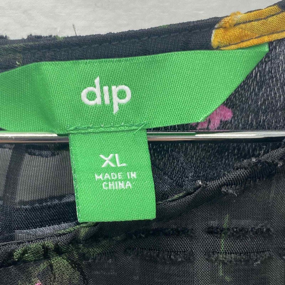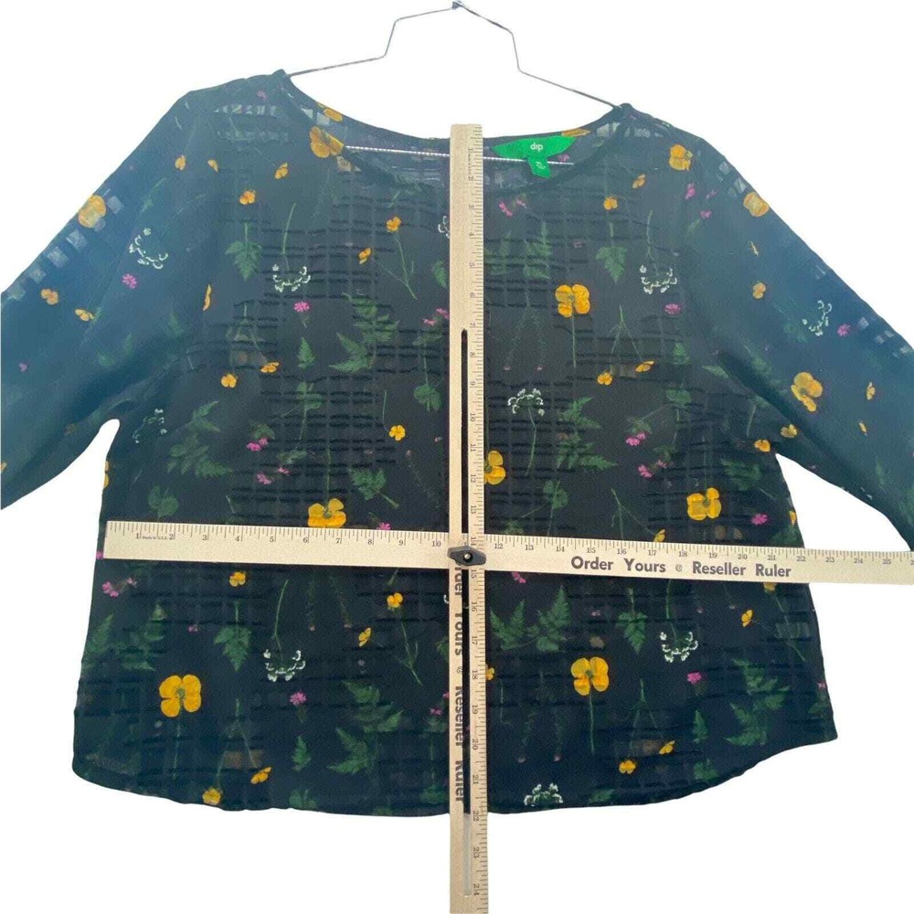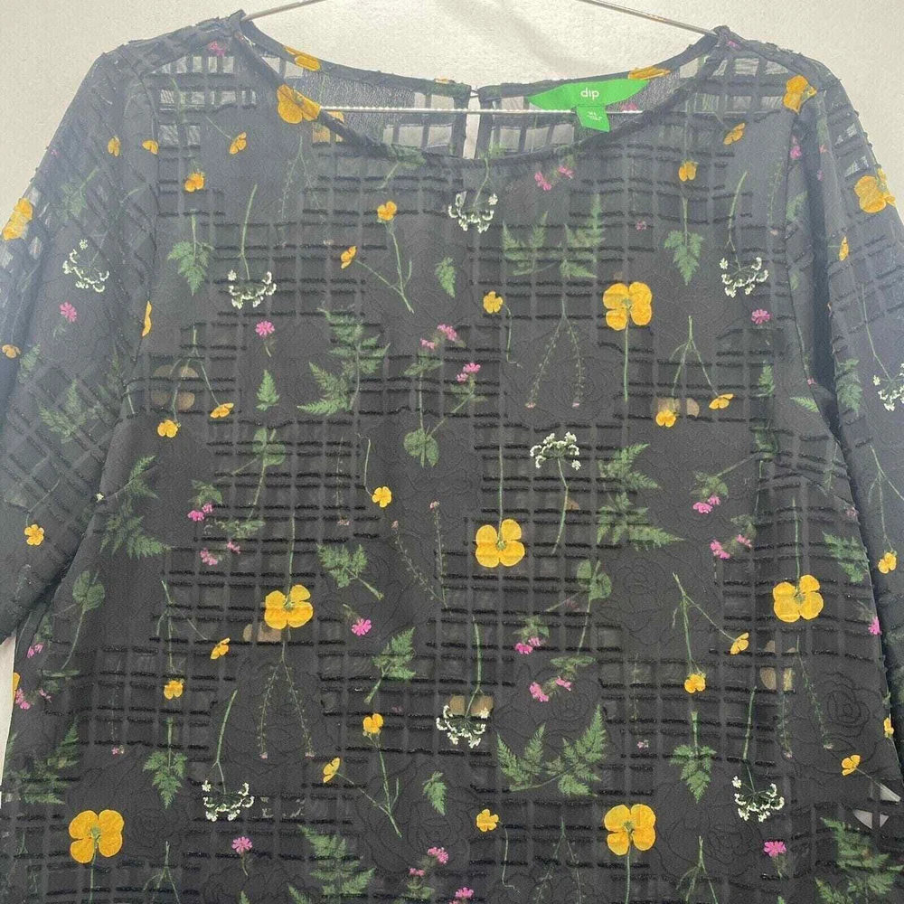 <![CDATA[<div>DIP Black Sheer Pink Yellow Floral Print Bell Sleeve Crop Blouse Size XL...