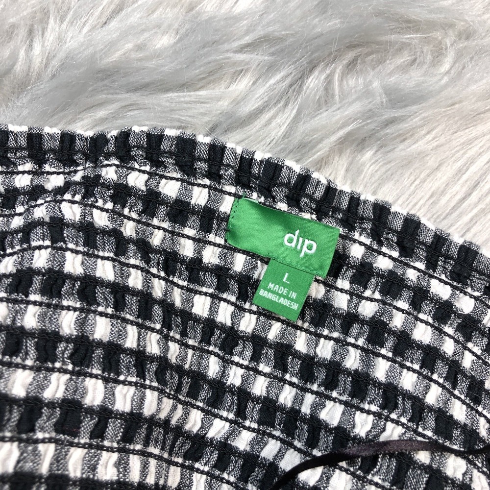 Up for sale is a women’s top by Dip. Tagged a size large. New with tag. Linen cotton blend in black and white. Smocked elastic in back. Measurements: 17” across chest lying flat, measured from underarms 11.5” in length from top bodice to hem, not including strap length If sizing or condition worries you about this item, please do not purchase. Returns are not accepted. You are responsible for knowing how items may fit you. Colors can look different on multiple screens. Items are always posted to the best of our ability. If you worry about an items fit, please ask questions before committing because all sales are final. I will only ship to address on ebay, no exceptions. If there is no offer option listed on the item, I will not accept offers via message. Messages with offers will be ignored. Payment for auctions and best offer is due before the 48 hour mark after winning. Payment is only accepted through paypal.