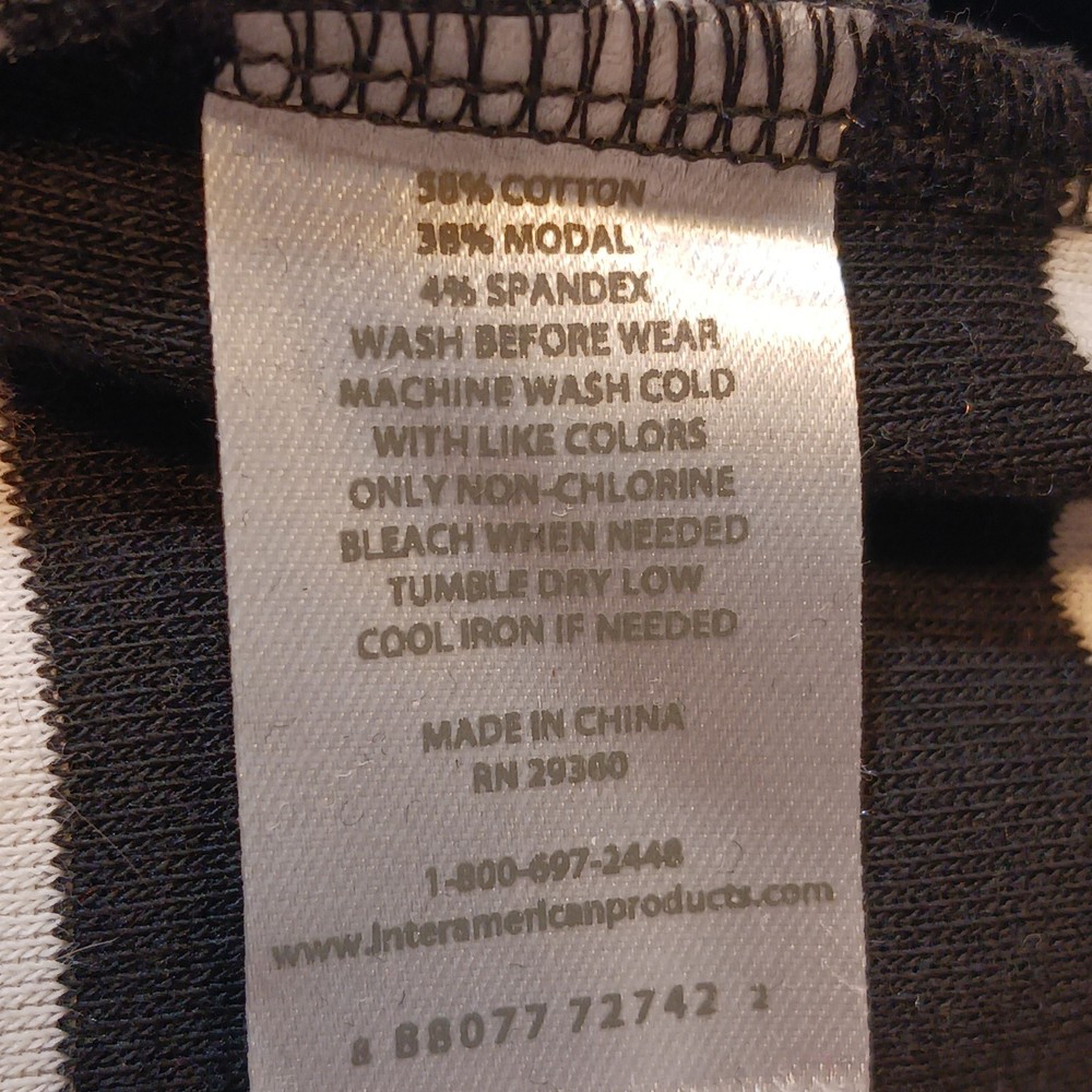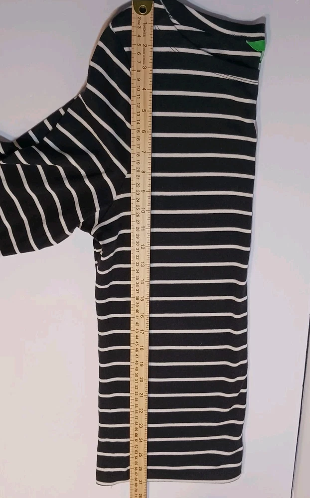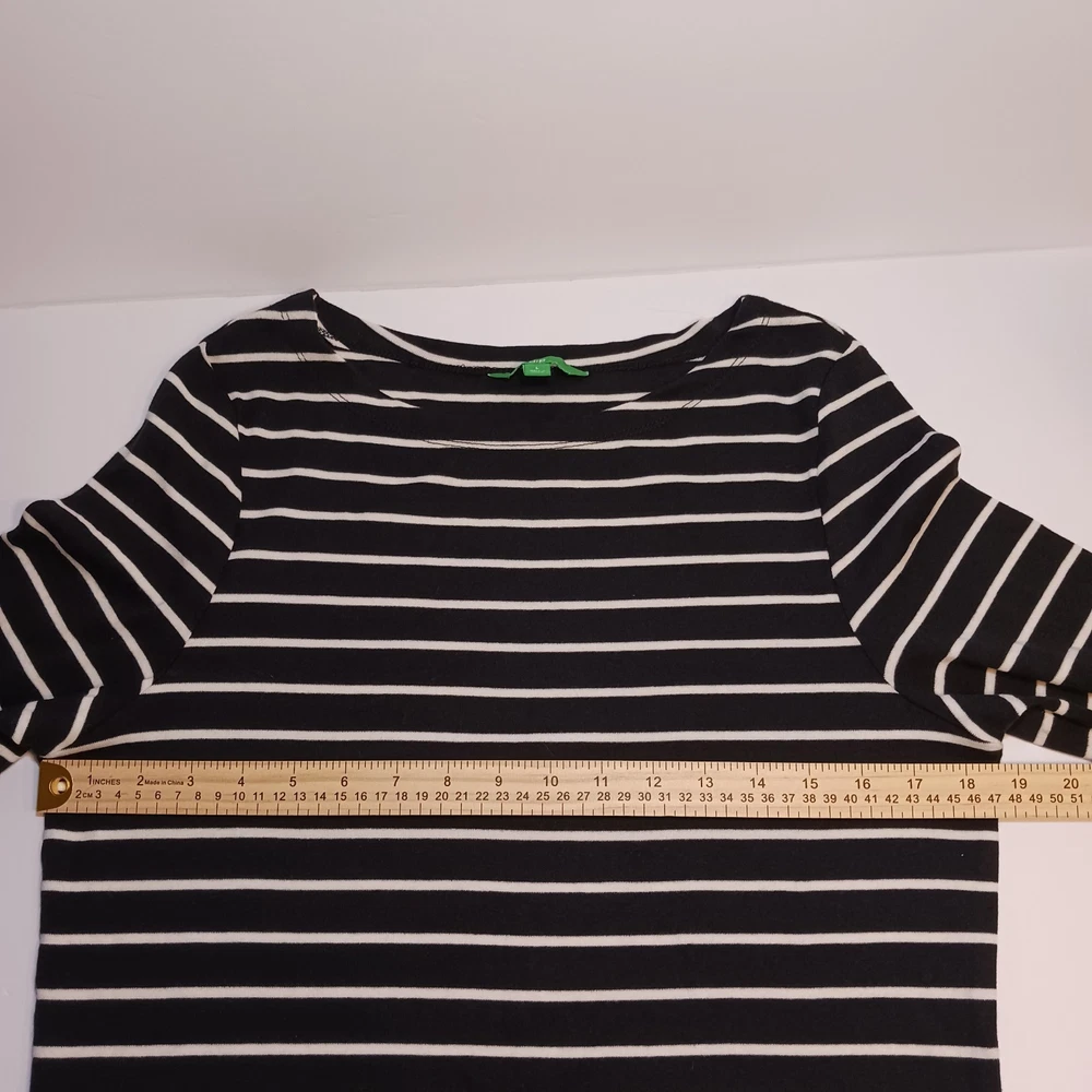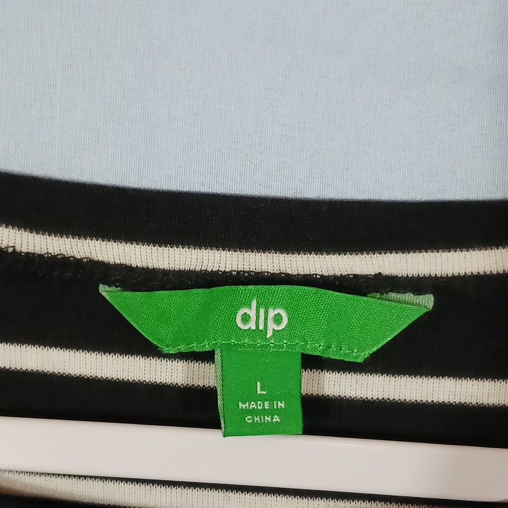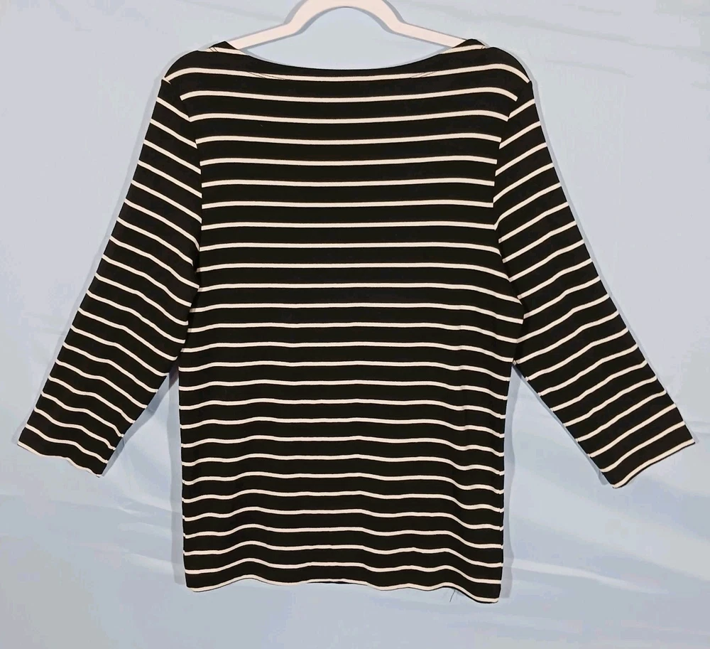DIP Women's Large Black & White Striped 3/4 Sleeve Cotton Blend Top