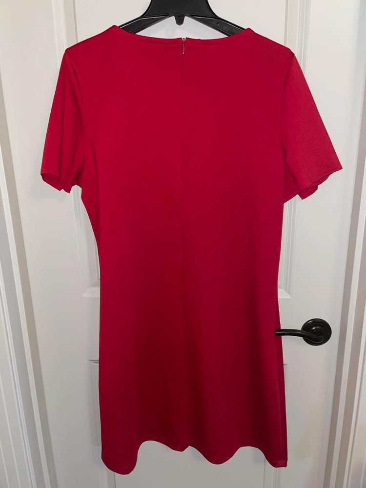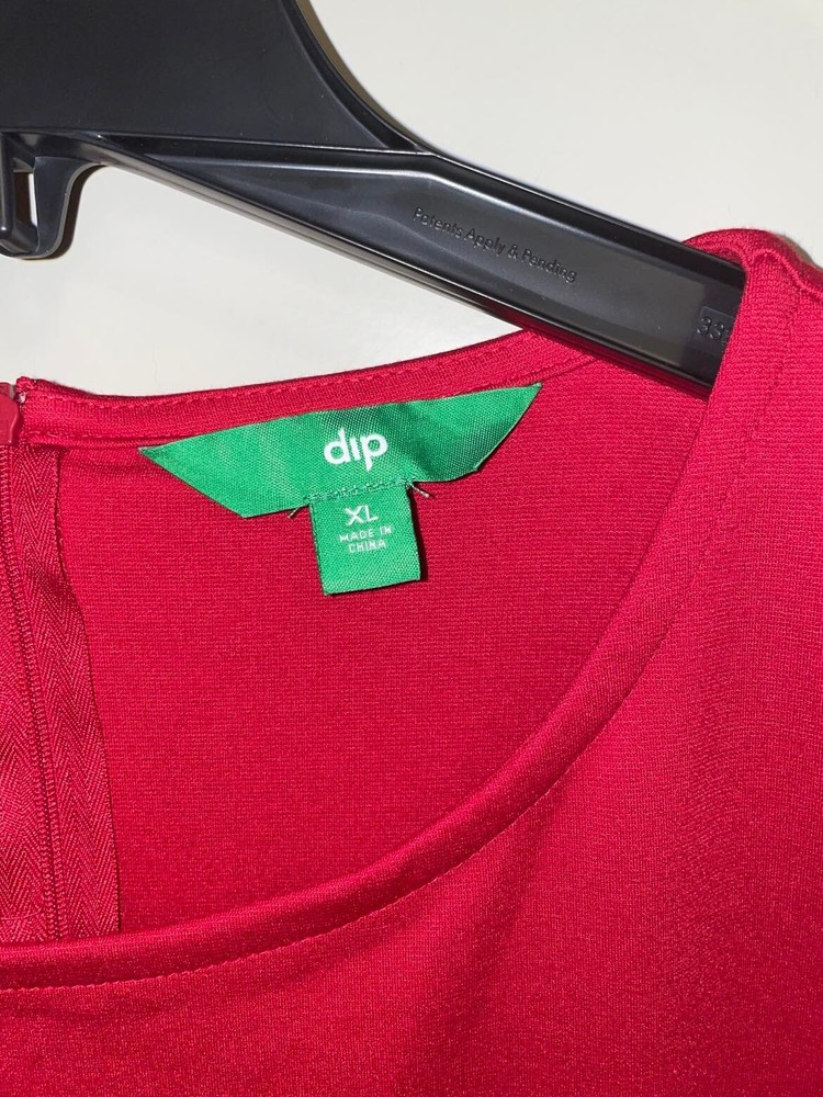 DIP Bright Red Sheath Style/Short Rough Cut Sleeve Dress ~ Size X-Large XL DIP Bright Red Sheath Style/Short Rough Cut Sleeve Dress ~ Size X-Large XL VENDOR DIP ITEM Dress SIZE XL DETAILS This dress is red in color, and made of 75% poly/20% rayon/5% spadex. It is very simple in style with short rough cut sleeves and a sheath look. When laid flat and unstretched, this item measures 24" across at the armpits, and 37" inches in length. Hidden zipper in the back measures 9.5" inches. CONDITION Excellent pre-owned condition!! The item shown is the actual item for sale, I dont see any evidence of stains, holes or wear. This item is from a smoke free home. The winning bidder is to pay the auction price, plus $6.50 for USPS first class shipping in a padded mailer, or USPS priority mail padded mailer shipping for $8.50. Please ask any questions before bidding - all sales are final. Sorry, no international sales. Check out my other auctions to save on shipping costs. I love to combine shipments for bidders! Thanks for looking! Listing and template services provided by inkFrog