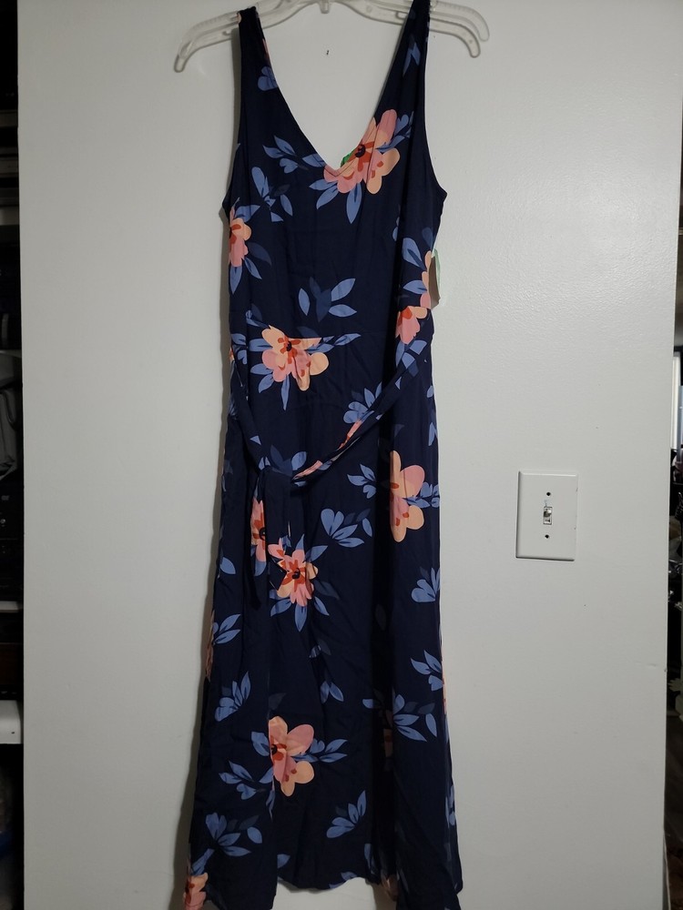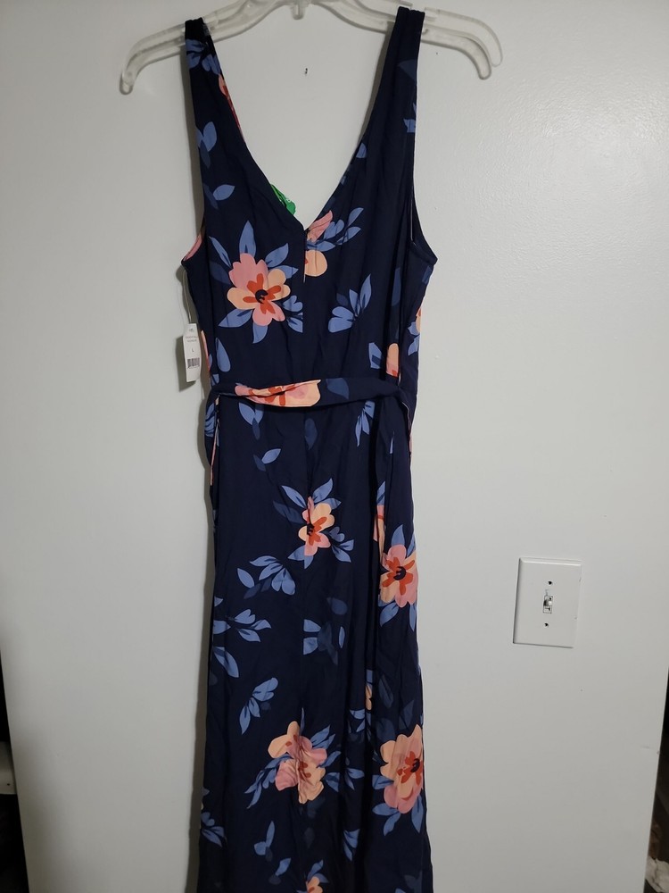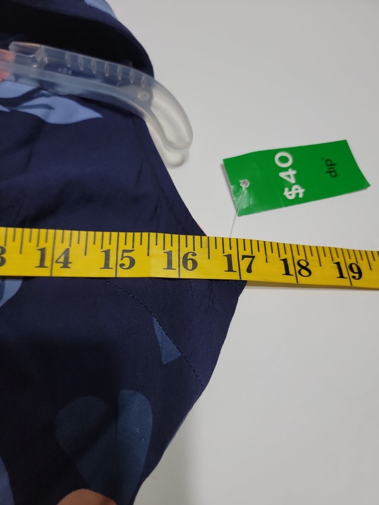 DIP Floral Navy Blue Women Dress Sz Large. Good pre owned condition. See pictures for additional features and flaws. Measurements in photos. Thank you for shopping and supporting Greenwood Marketplace! New items added daily.