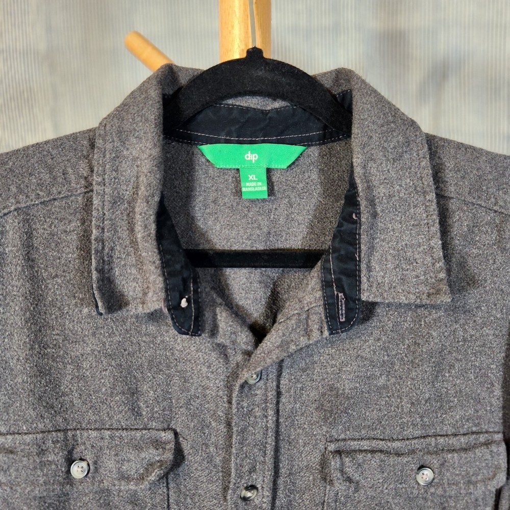 This DIP button-up shirt is a classic and stylish choice for various occasions. Made of dark gray flannel fabric, it features a collared neckline, long sleeves, and a button closure. The shirt has a pocket on the front for added convenience. With a size XL, this shirt is suitable for men looking for a comfortable and versatile option for travel, parties, work, or casual wear during the fall, winter, and spring seasons. The design of the shirt incorporates themes like hipster, nature, and grunge, making it a trendy choice for those who appreciate a timeless and rugged aesthetic.