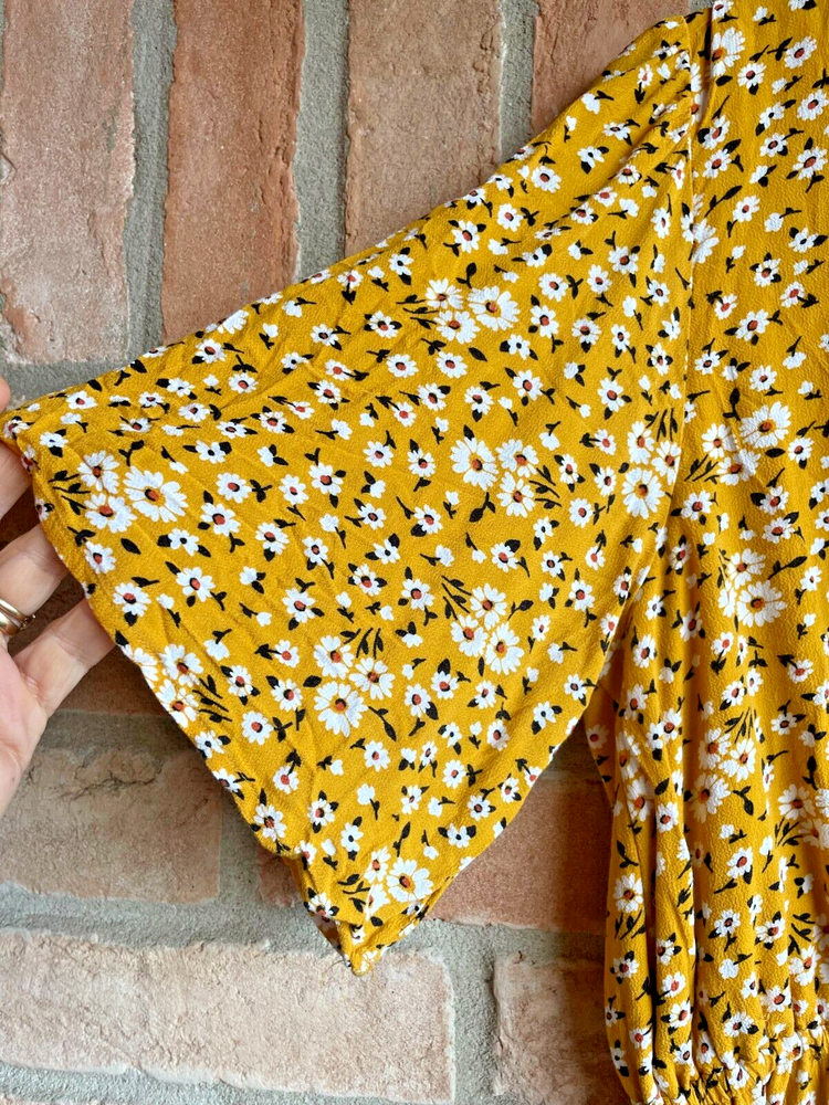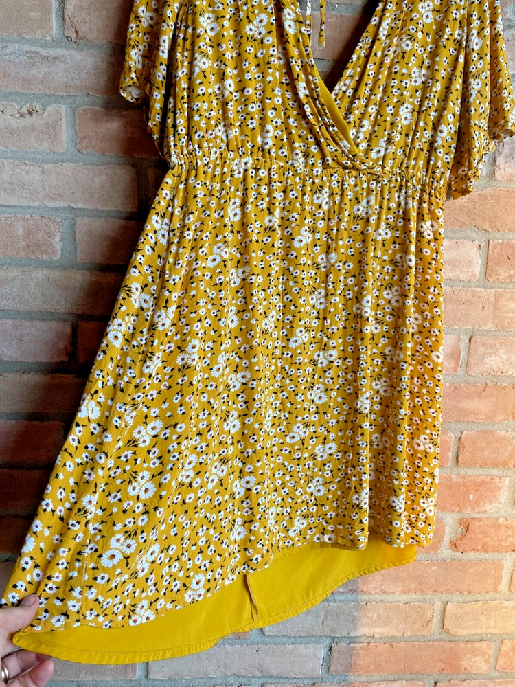 Love this dress! The fit is perfect—flattering and comfortable with a cute flare. The mustard color and floral print are gorgeous, and the V-neck adds a stylish touch. Great for casual outings or dressing up. Super versatile and easy to wear!