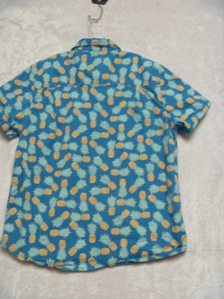 Here is an nice DIP Mens Size XXL Short Sleeve Shirt Turquoise Blue w/ Pineapples Hawaiian 100% cotton