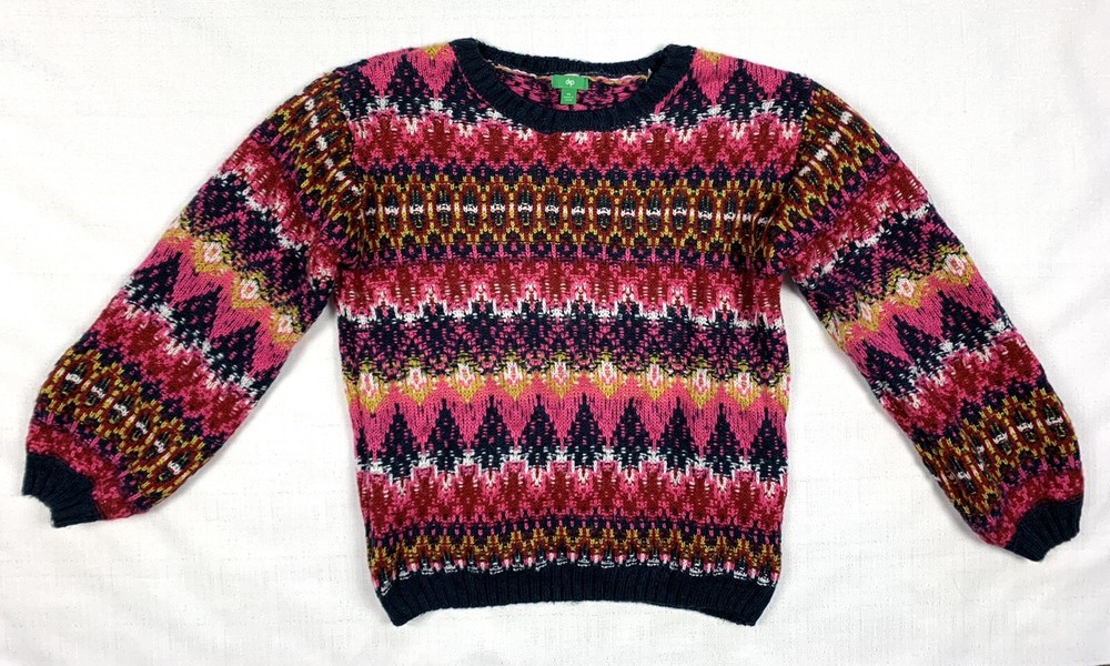 dip - Multi-Color Striped Acrylic SWEATER gently used size XL 3/4 balloon sleeves crew neck machine washable more info above... length= 23" sleeve length= 22" bust= 40" hem= 36" stretchy * S&H is $5.9...