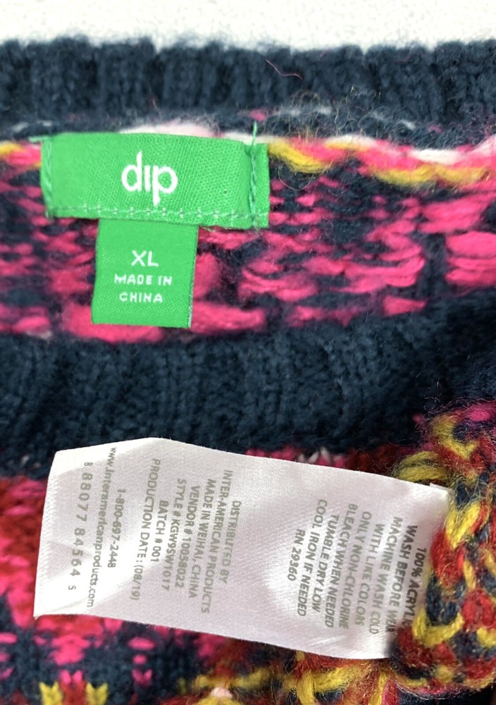 dip - Multi-Color Striped Acrylic SWEATER gently used size XL 3/4 balloon sleeves crew neck machine washable more info above... length= 23" sleeve length= 22" bust= 40" hem= 36" stretchy * S&H is $5.95, USPS 1st Class Mail *