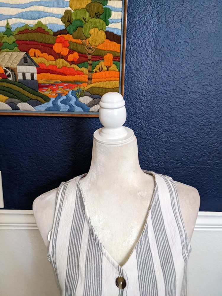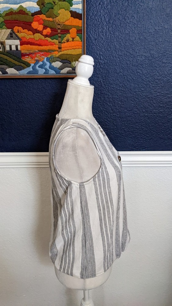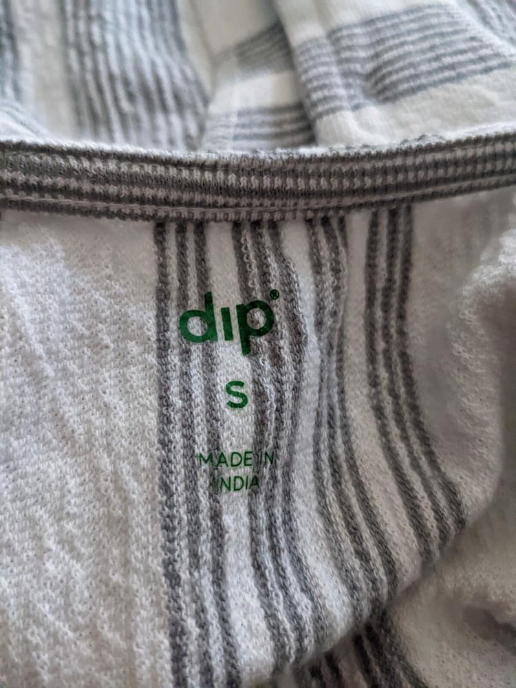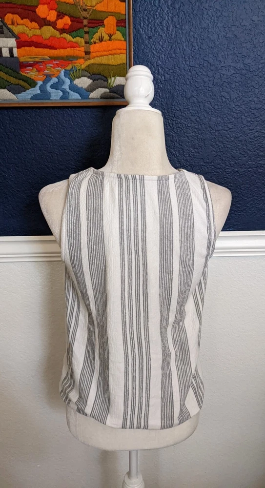 DIP Sleeveless Crop Summer White Gray Tie Front Button Shirt Top Sz Small S chest 36" Length 21" 60% cotton, 40% polyester Machine wash cold FieldFlowerFinds is dedicated to finding beautiful secondhand treasures and getting them to you. N196 Policy: If you are unsatisfied with your item, please contact me so we can work it out! All returns must be sent back in the same condition as received Refund amount for returned item will be the total amount minus the original shipping