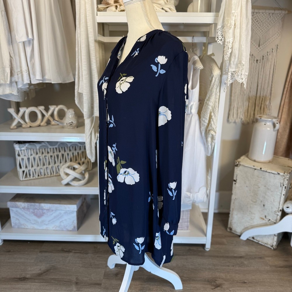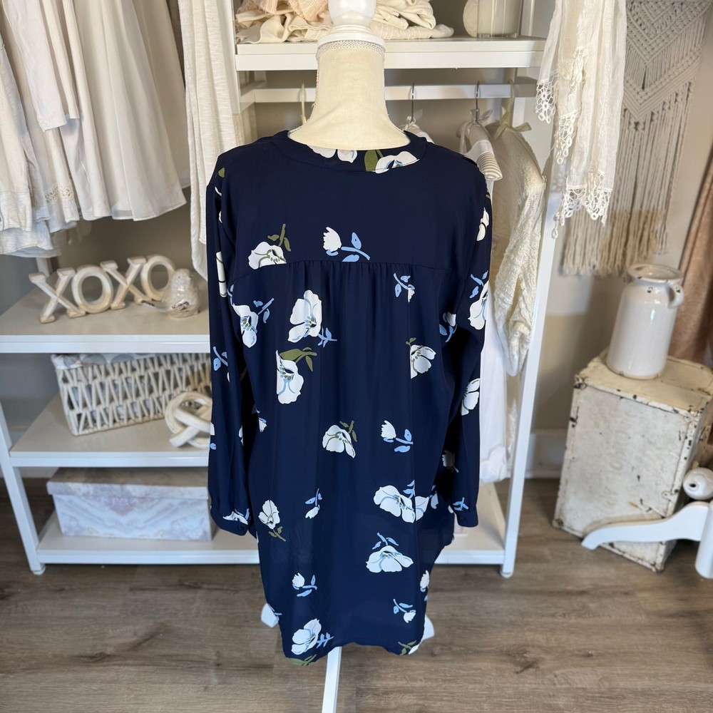 <![CDATA[<div>DIP women's sz. large blue floral shirt dress, soft, feminine, blousy Length from top of the shoulder to the hem is 33 inches. Pit to Pit width is 23 inches. Waist measures 46 inches in circumference Hip measures 48 Inches in circumference Style Profile: demure, mature, quiet luxury, country club, chic, old money, sophisticated, conservative, fall, spring, summer, preppy, soft girl, dainty, delicate, romantic, feminine, minimalist, maximalist, Americana, eccentric, every day, versatile, layering, ladies who lunch, date night, classic, boss babe, work, career, professional, office, bold, country club, day to night, layering, summer, sunny, picnic, boho, bohemian, granola core, artsy, natural, eclectic, eccentric, cottage core, rugged, durable, classy, coastal, sailing, coastal, botanical, floral, grandma core, norm core, lagen look, prairie core, beach, vacation, summer, loungewear, by the pool * Smoke free Home
